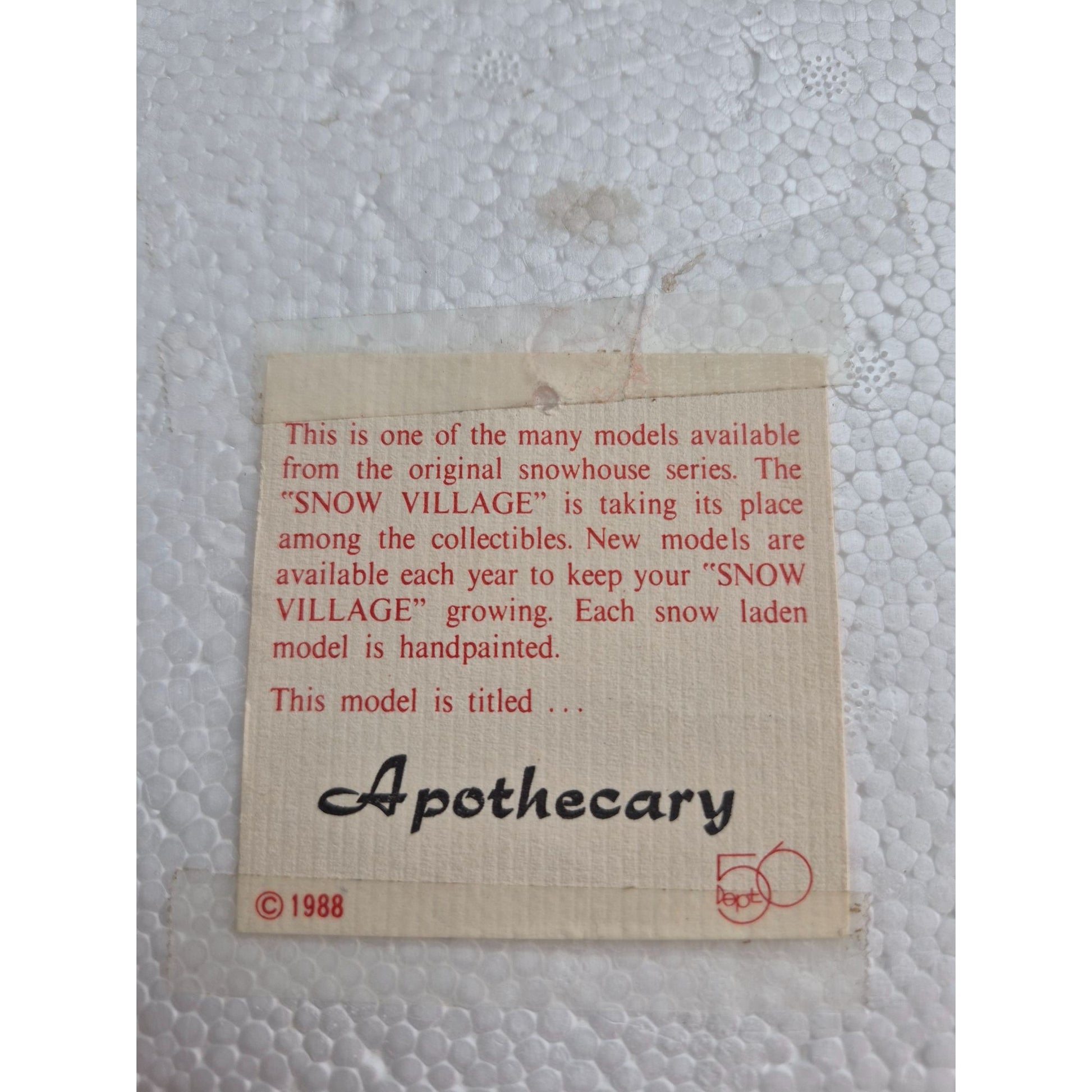 Department 56 Snow Village 1986 Apothecary Lighted Building