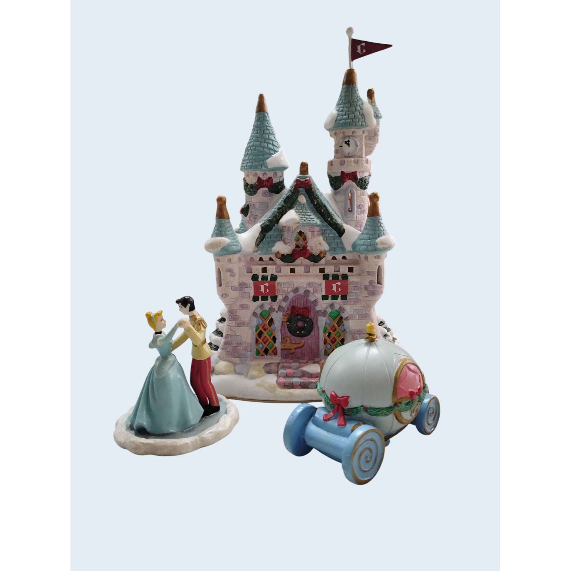 Disney Cinderella Castle Figurine Set W/ Prince & Cinderella Dance + Carriage Collectibles