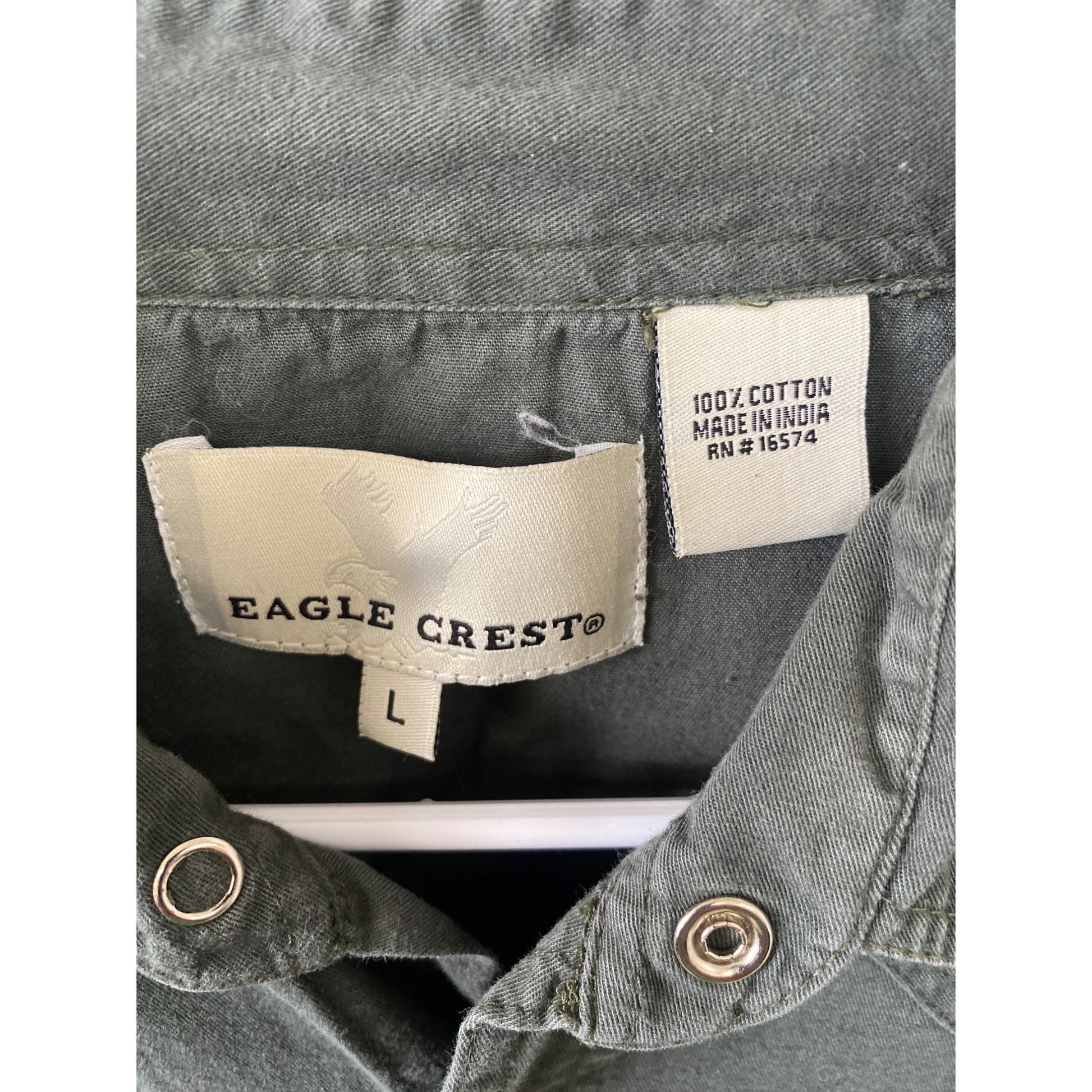 Crafted from 100% cotton, this Eagle Crest shirt combines comfort and rugged style. Its versatile green hue and classic western design elevate casual or workwear.