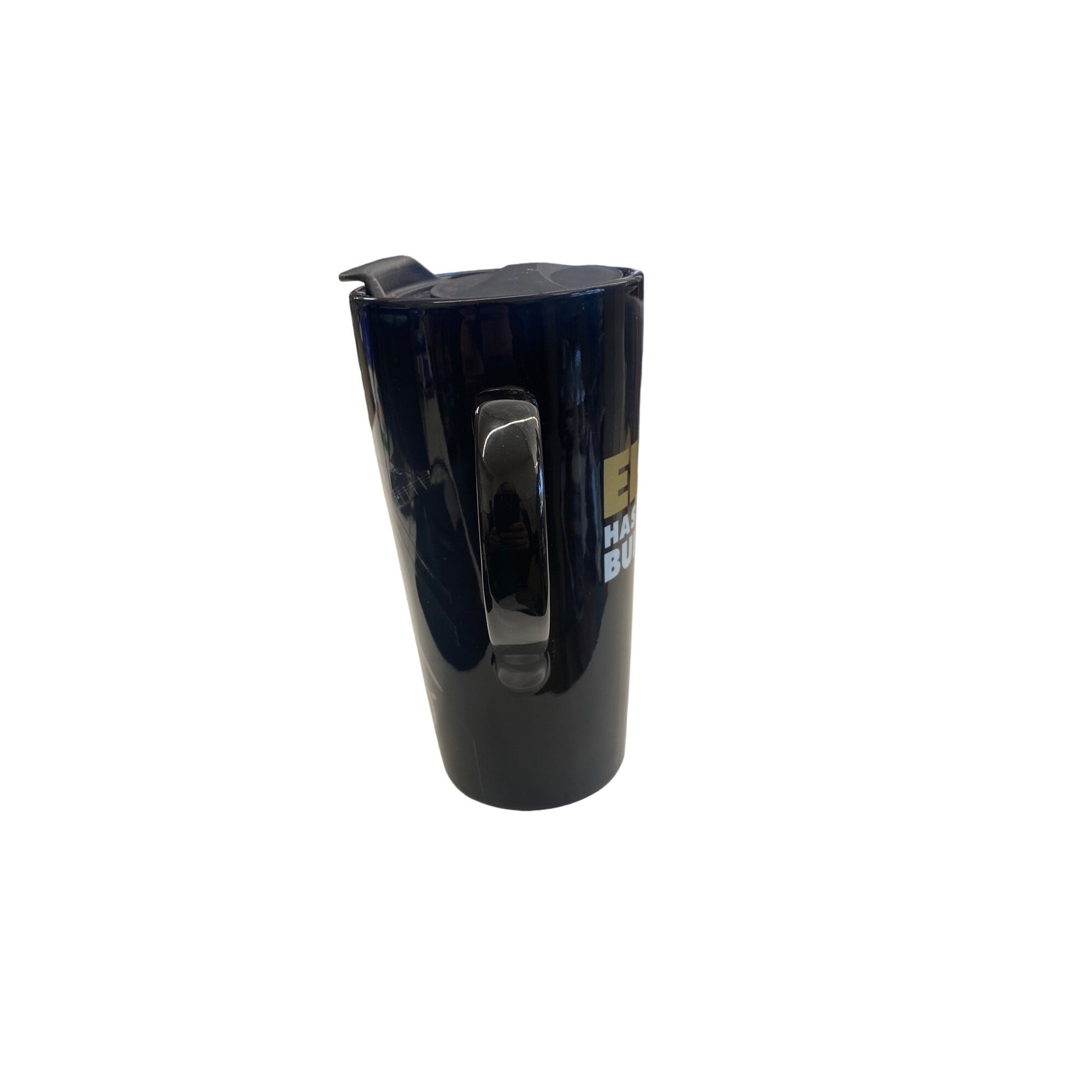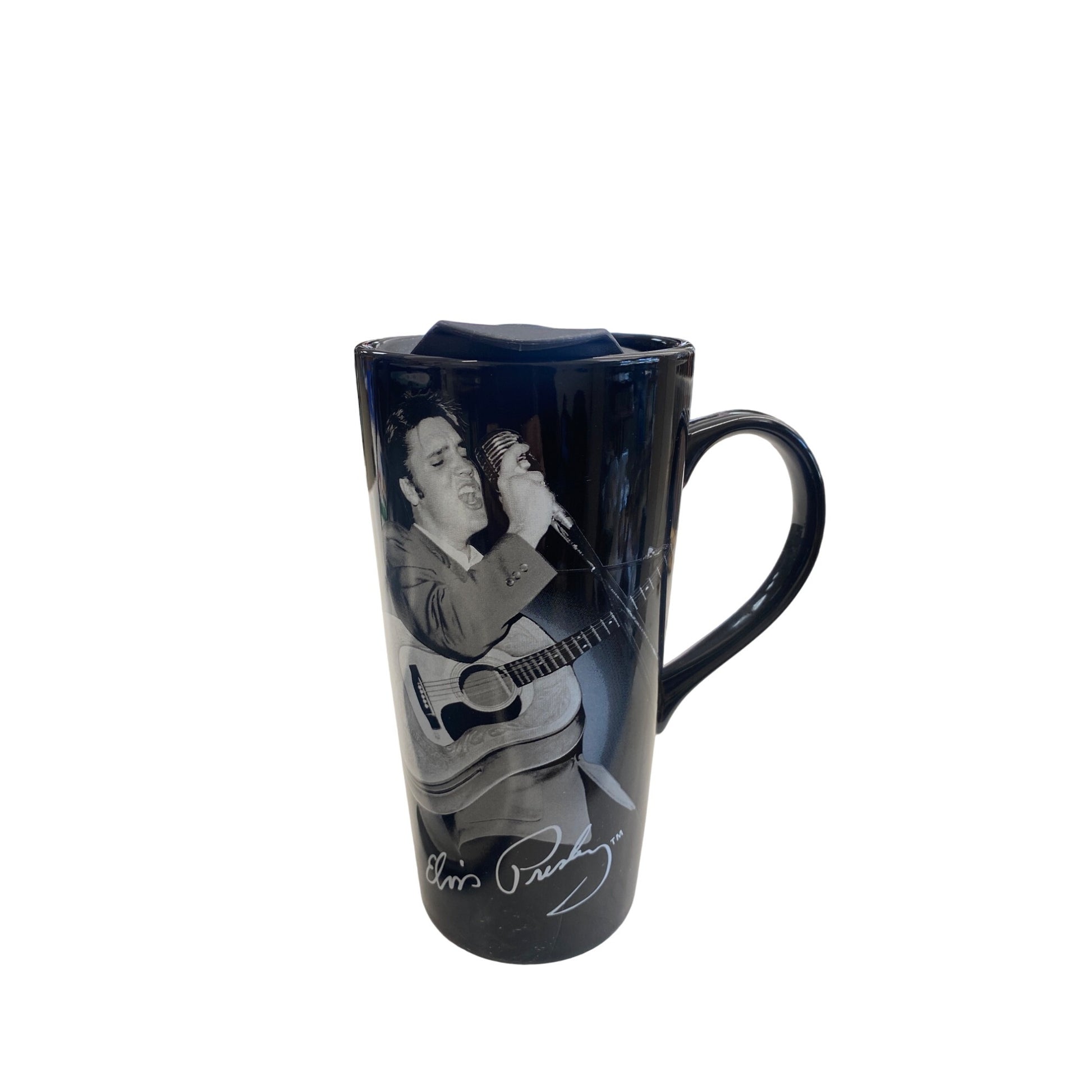 Elvis Presley Travel Mug 16 oz With Lid - "Elvis Has Left The Building" Black Ceramic