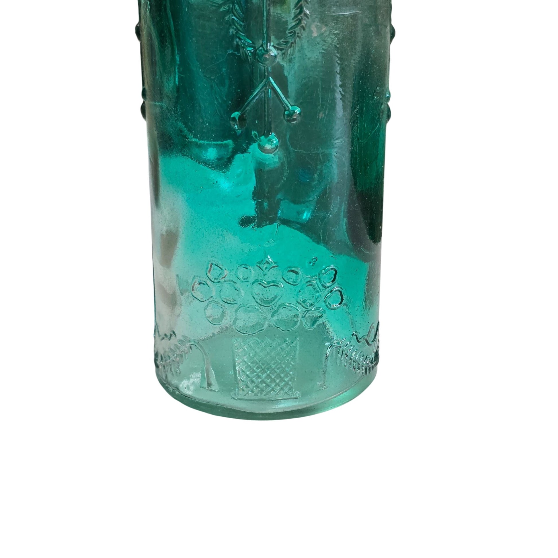 Embossed Glass Bottle Green 9"
