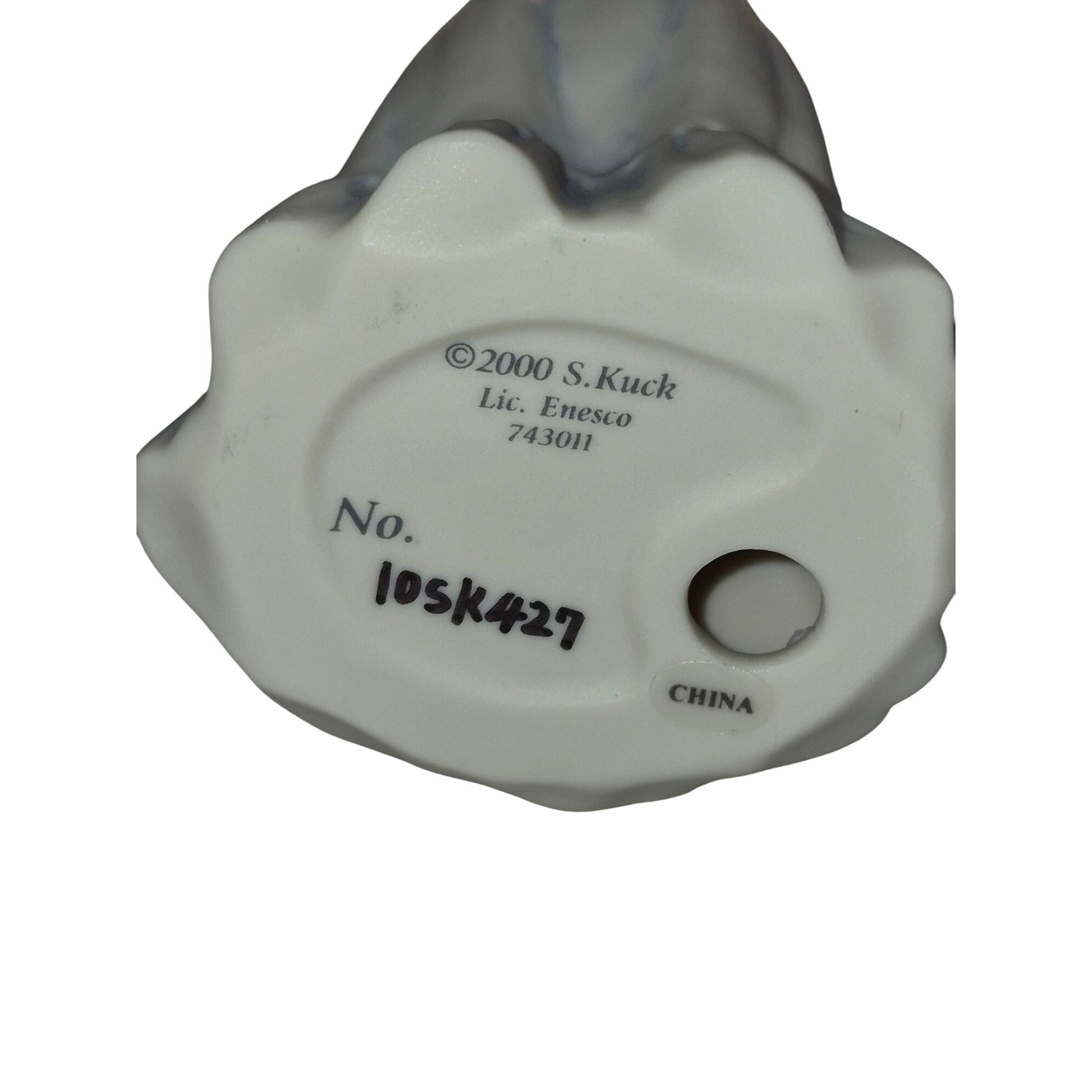 Enesco S. Kuck 2000 Angel Figurine With Silver Wings & Fruit Basket
