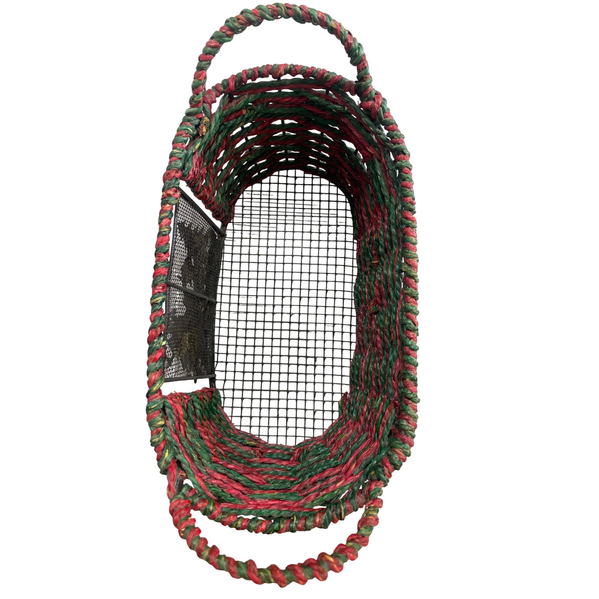 This charming basket, with its vibrant red and green hues, evokes the warmth of festive seasons. The intricate snowman scene adds a whimsical touch, making it a delightful decorative piece. Its sturdy handles ensure easy carrying, ideal for holding treats or gifts. An inviting addition to seasonal gatherings.