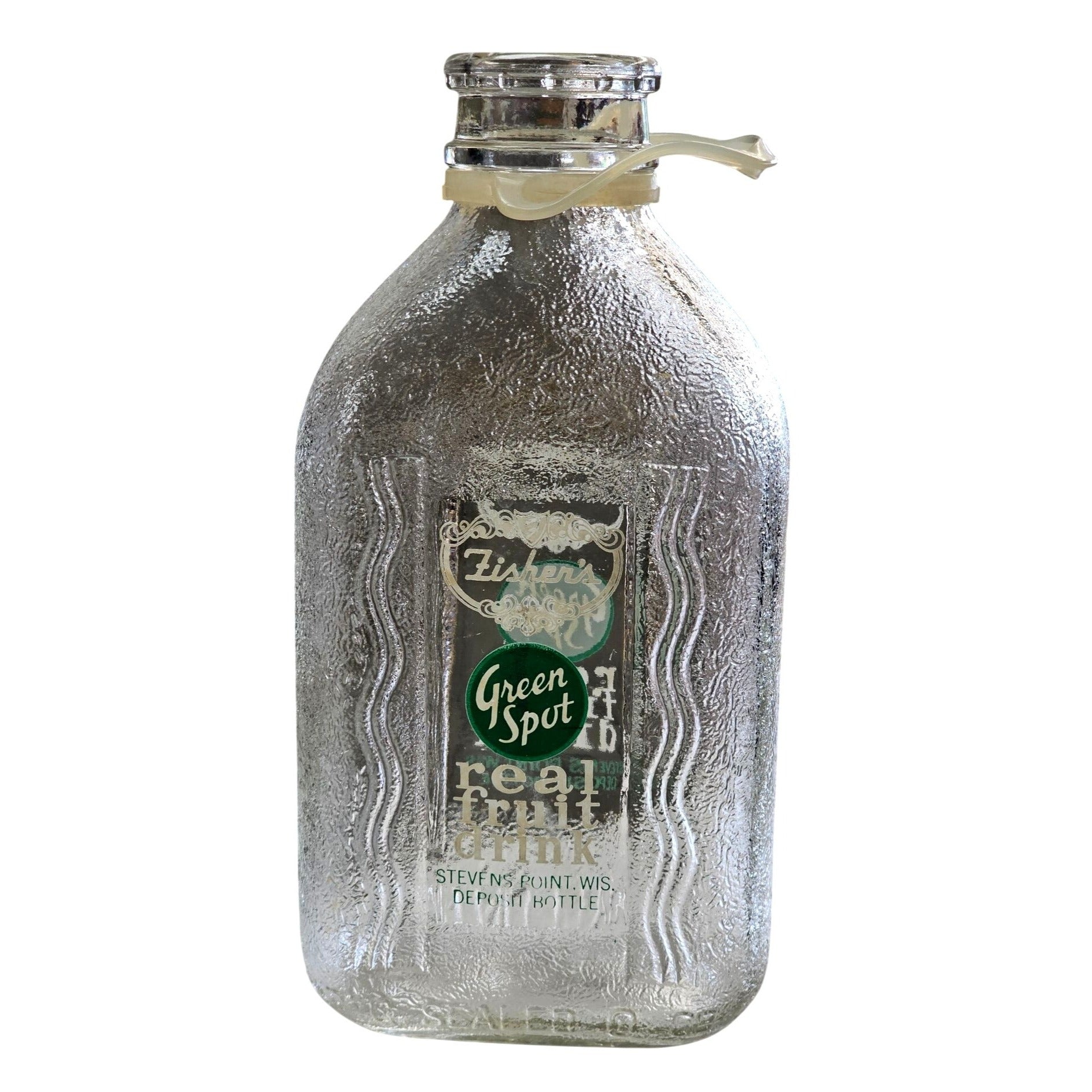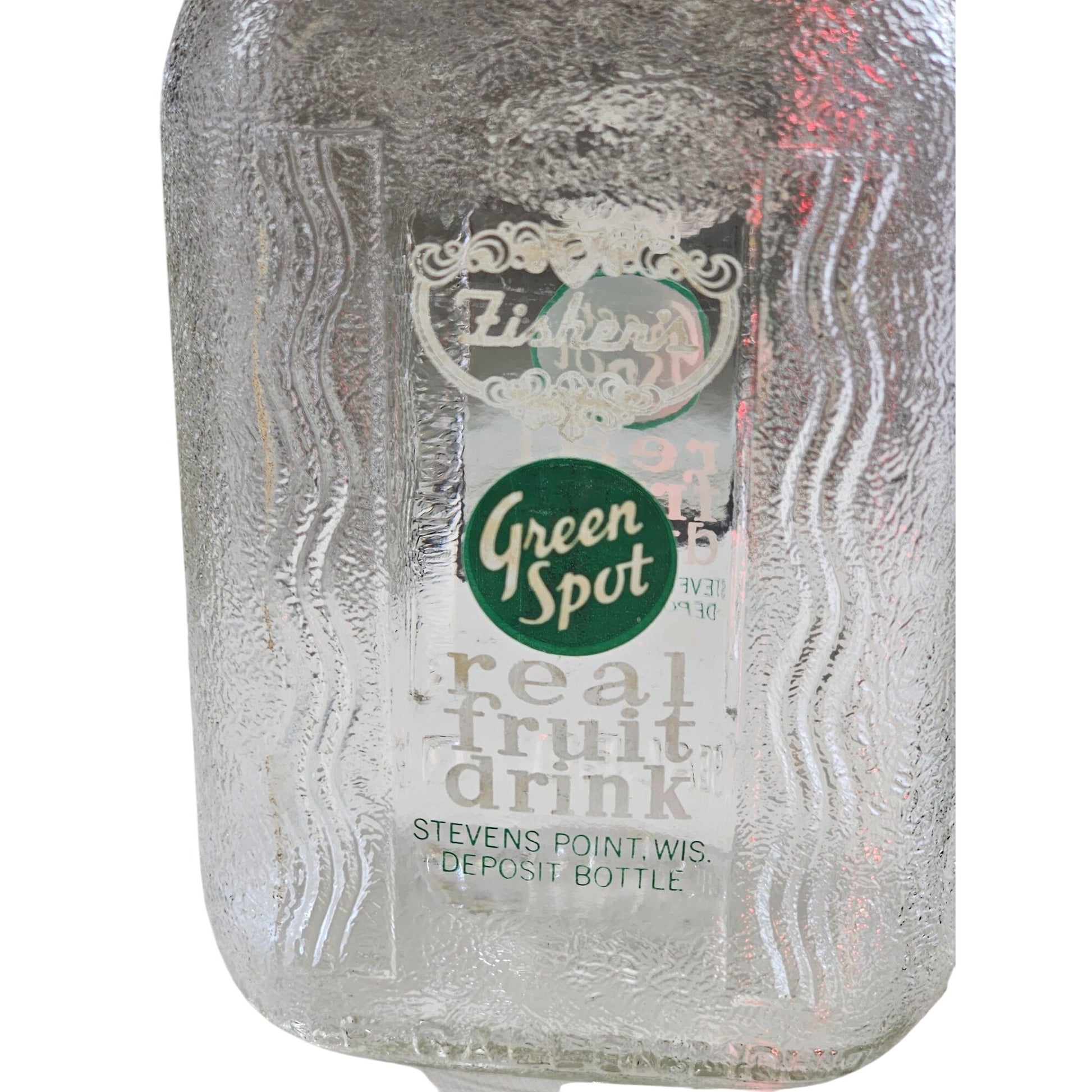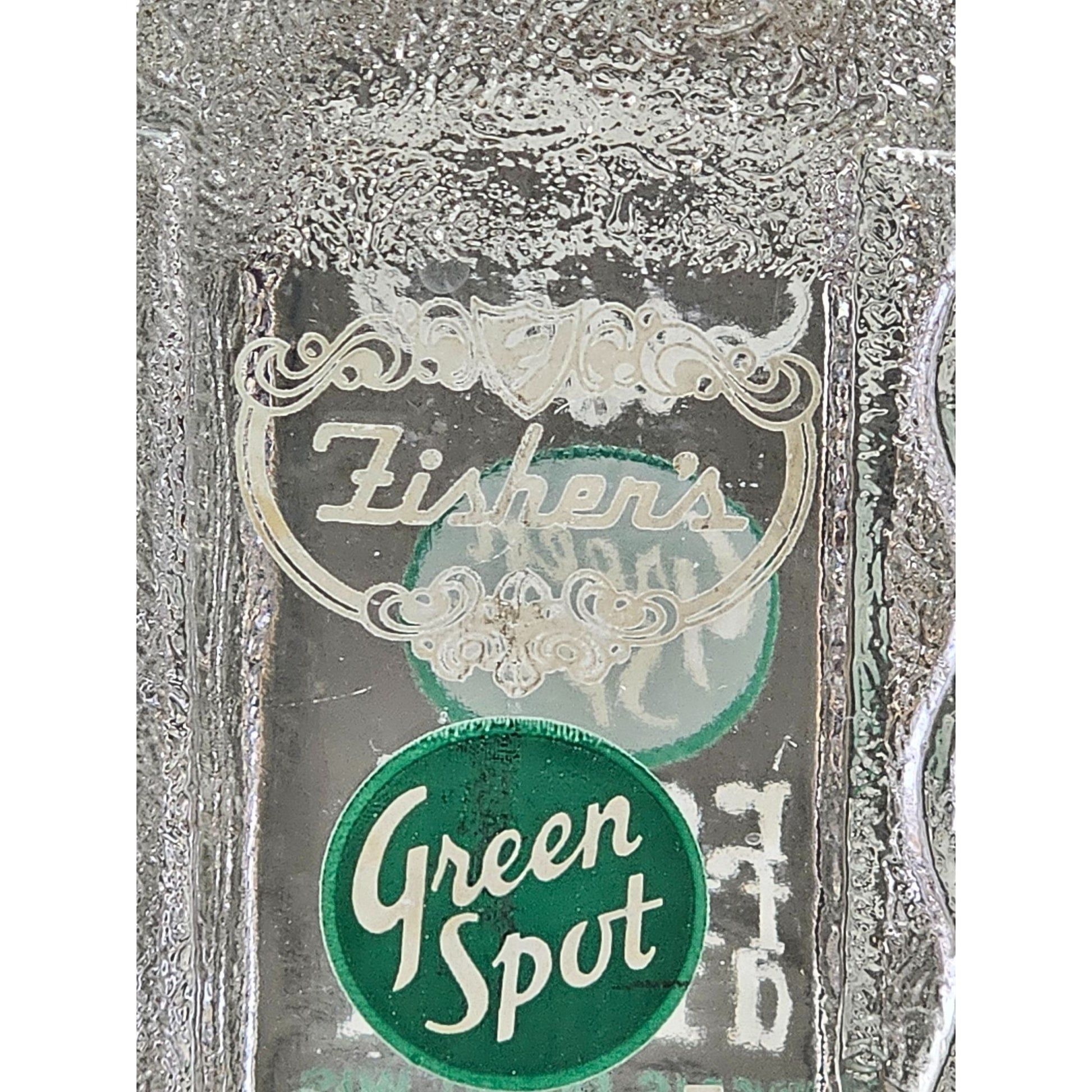 This vintage Fisher's Green Spot glass bottle, with its distinctive texture and embossed design, is both a collector's dream and a conversation starter. Its nostalgic charm and historical significance make it a valuable addition to any collection or decor. Showcase your appreciation for vintage design with this unique piece.
