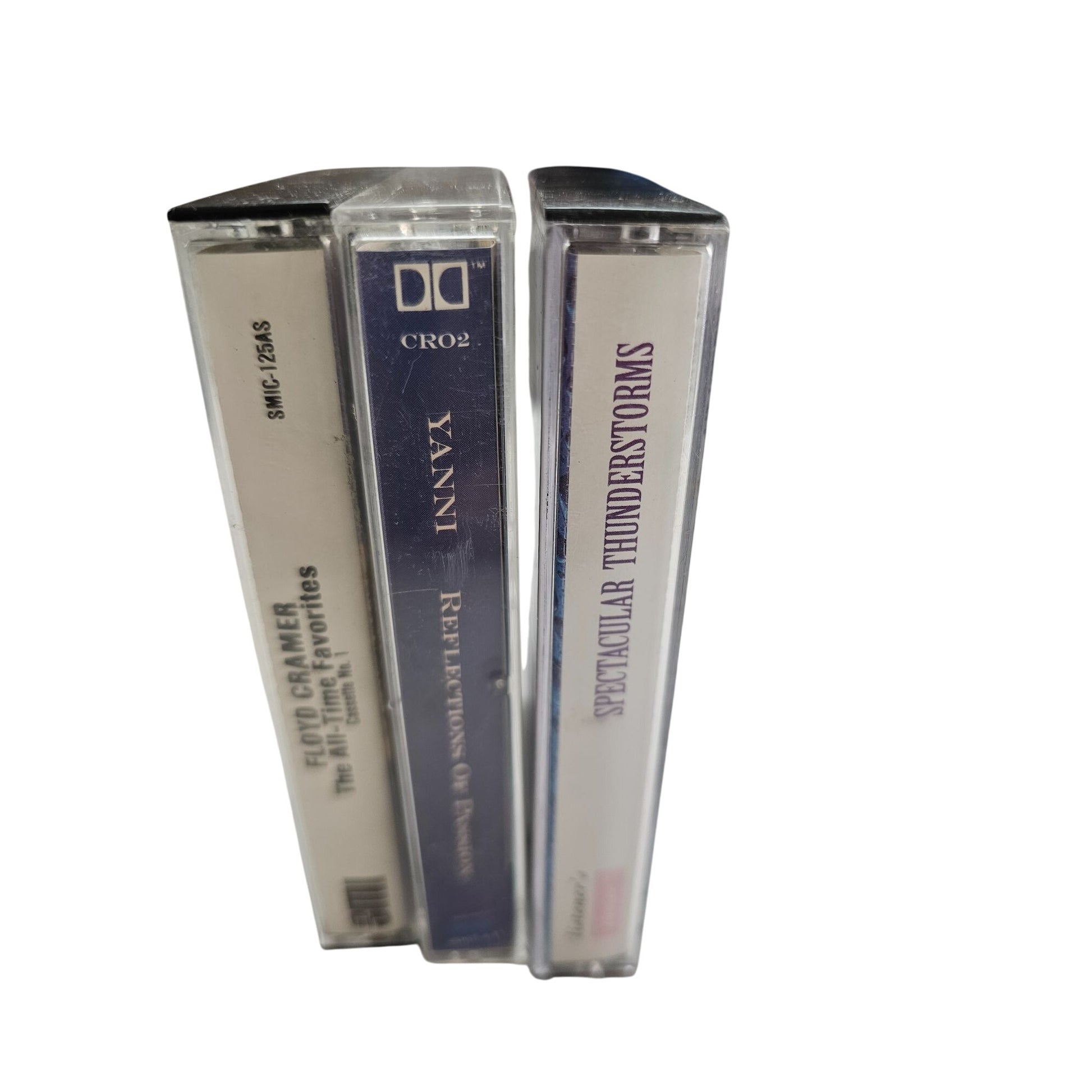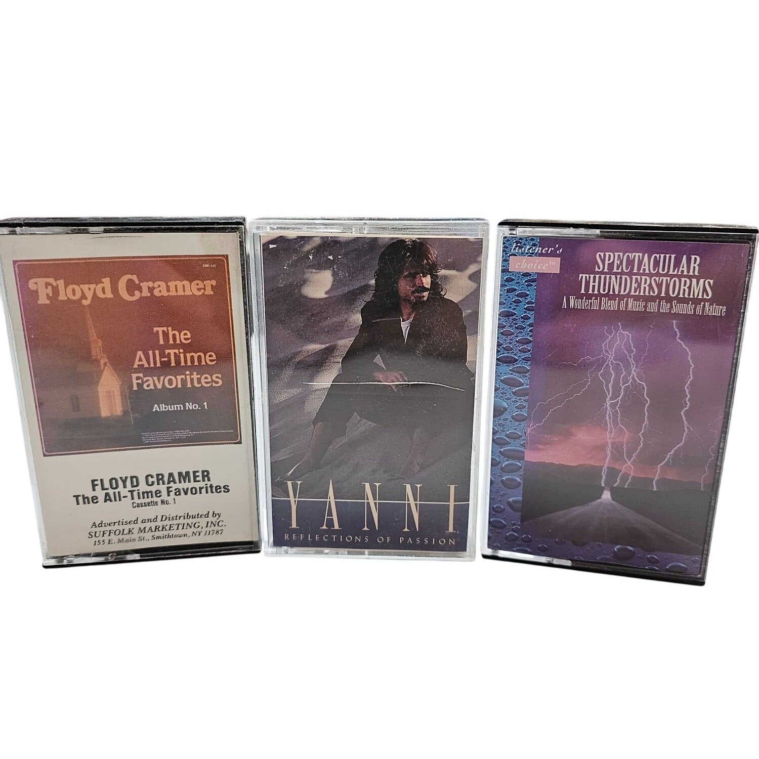 This collection of cassette tapes offers a diverse auditory experience. From the soothing harmonies of Floyd Cramer to Yanni's passionate instrumentals and nature's raw power in "Spectacular Thunderstorms," this set caters to varied musical tastes. Rediscover the charm of cassettes and elevate your listening sessions.