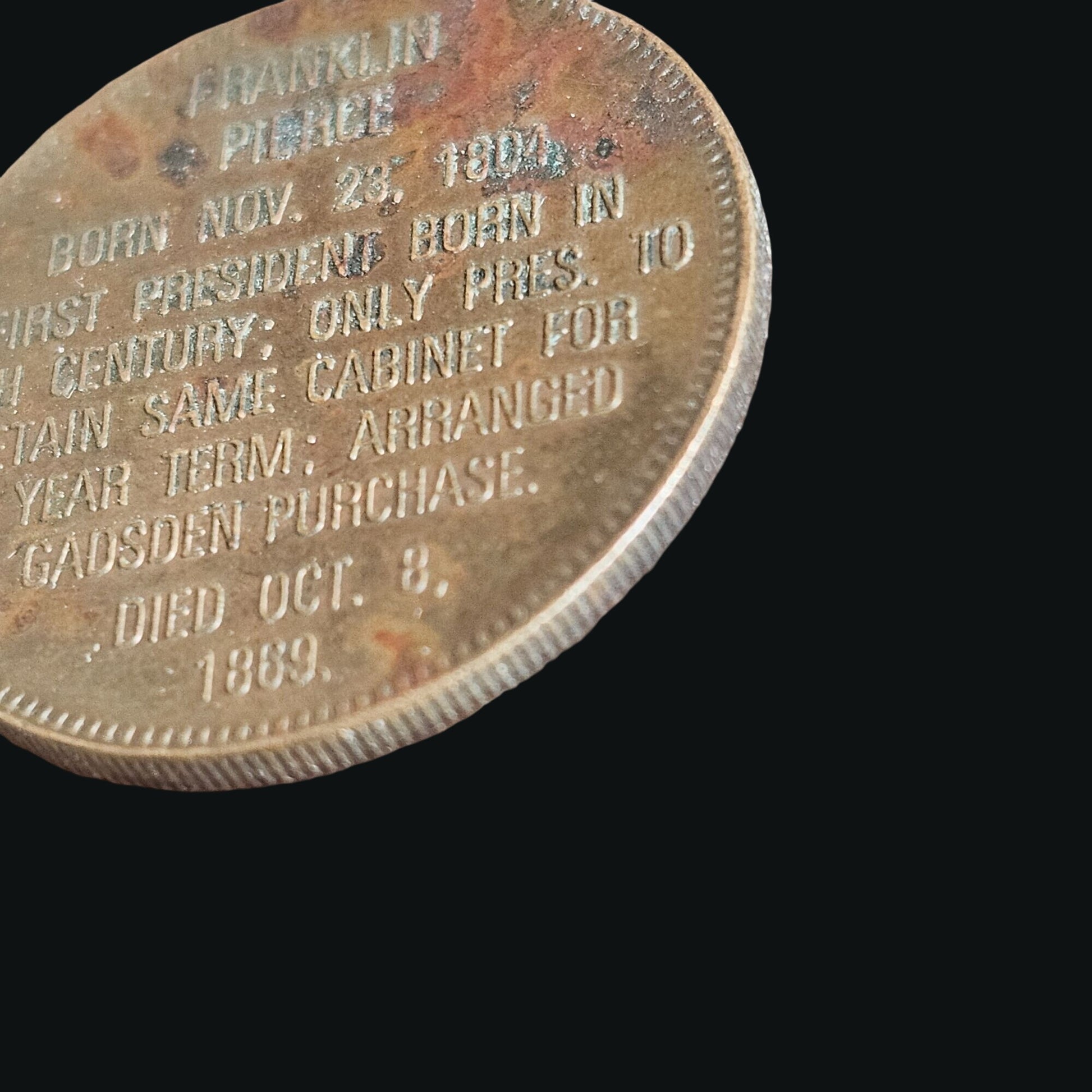 Franklin Pierce 14th President Commemorative Coin 1853-1857 Gold Tone Historical Collectible