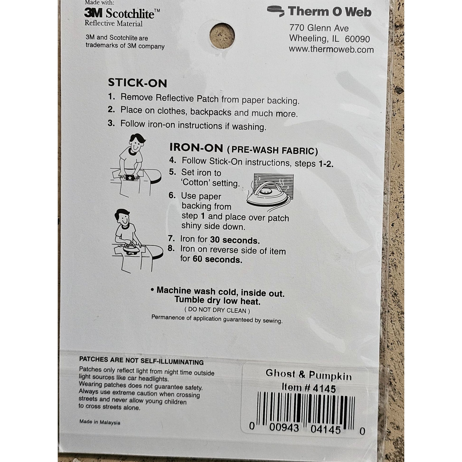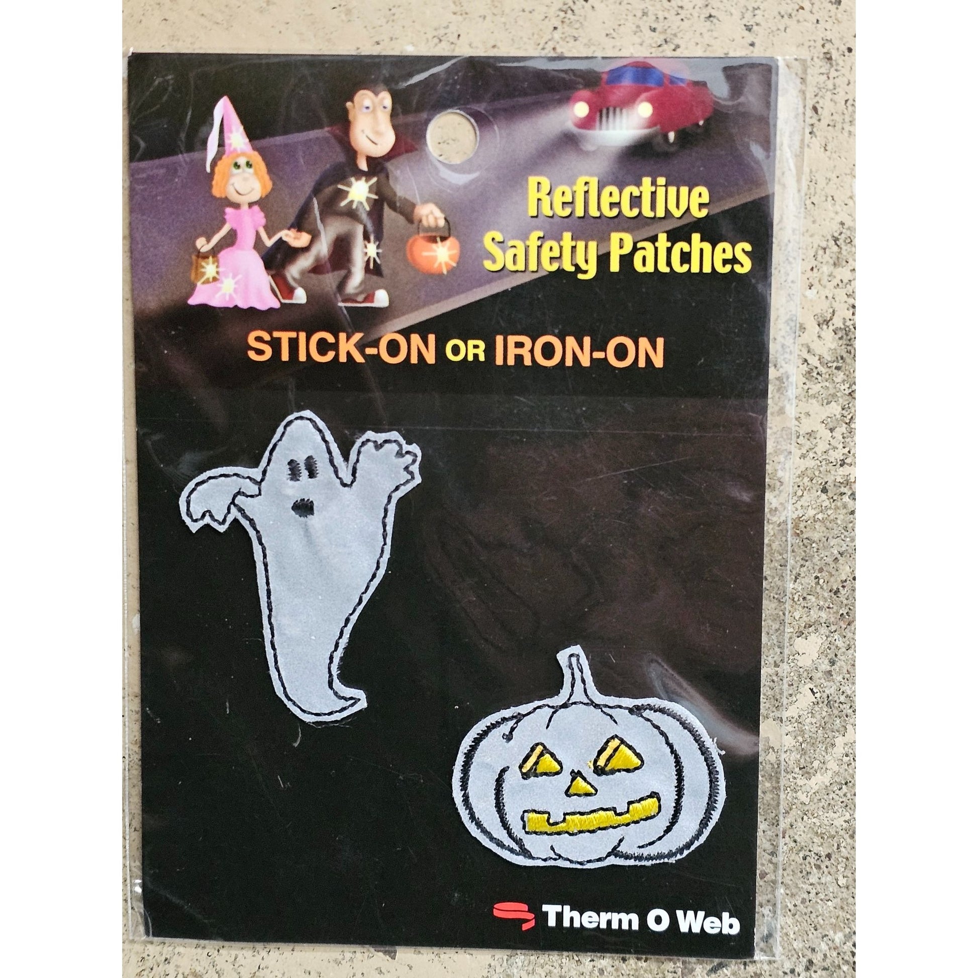 Enhance your Halloween attire with these reflective safety patches from Therm O Web. Designed to stick on or iron on, they provide a fun and safe way to accessorize. Their reflective nature ensures visibility during nighttime activities, making them both a stylish and practical addition to your clothing or accessories.