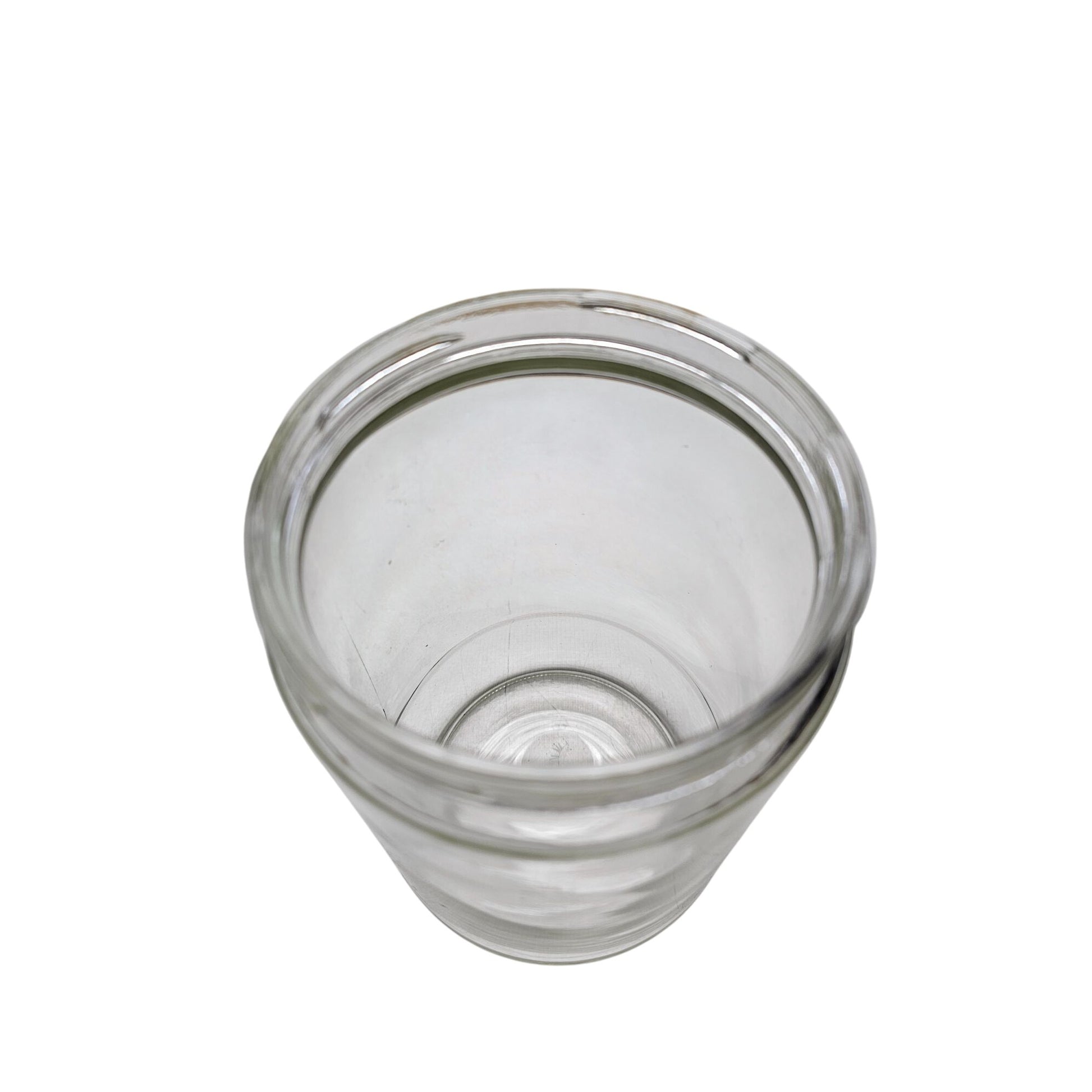 This vintage glass Kerr jar, complete with a metal lid, offers both aesthetic appeal and functional versatility. Ideal for storing kitchen essentials or decorative purposes, its timeless design complements various home styles. Its clear glass body allows for easy viewing of contents, ensuring practicality alongside style.