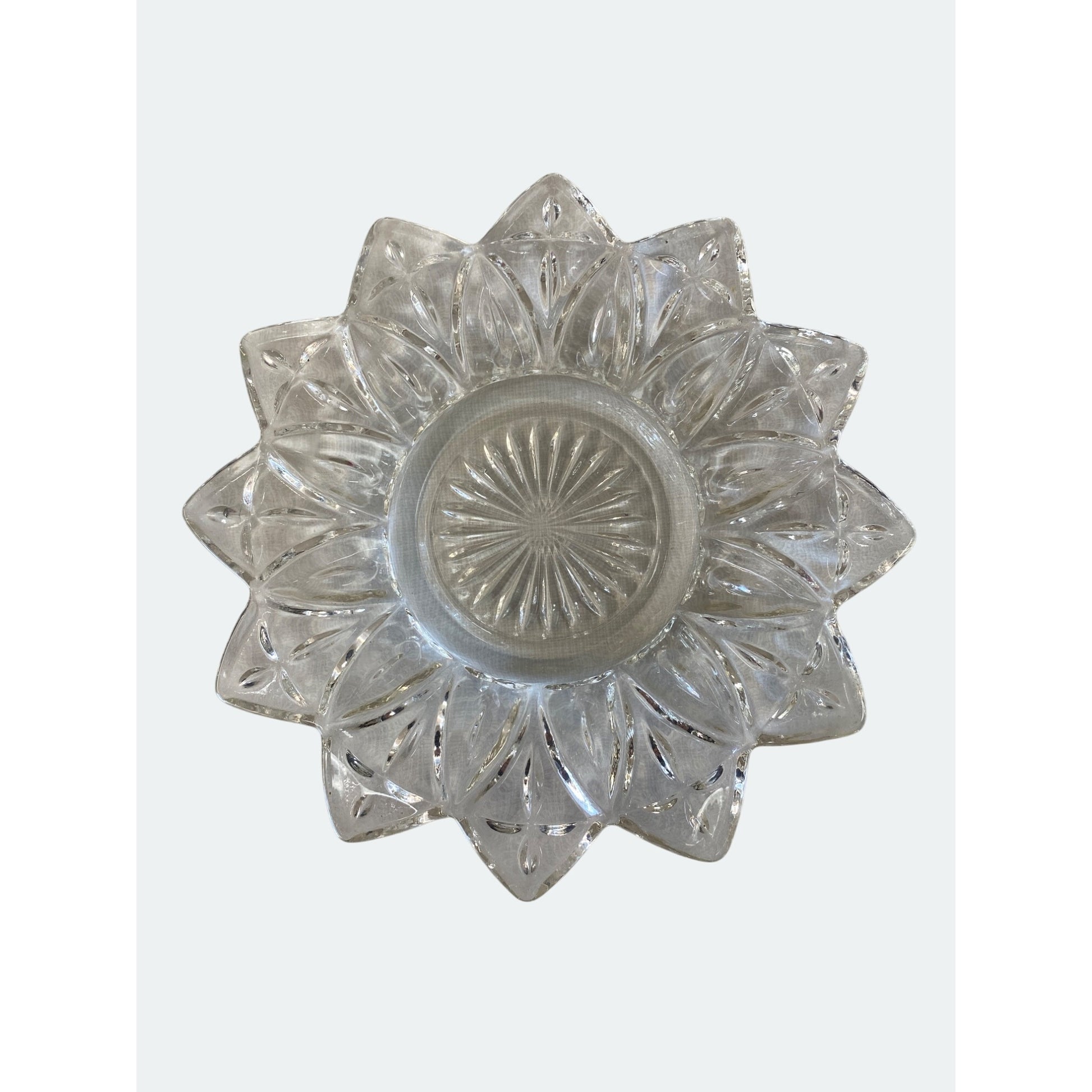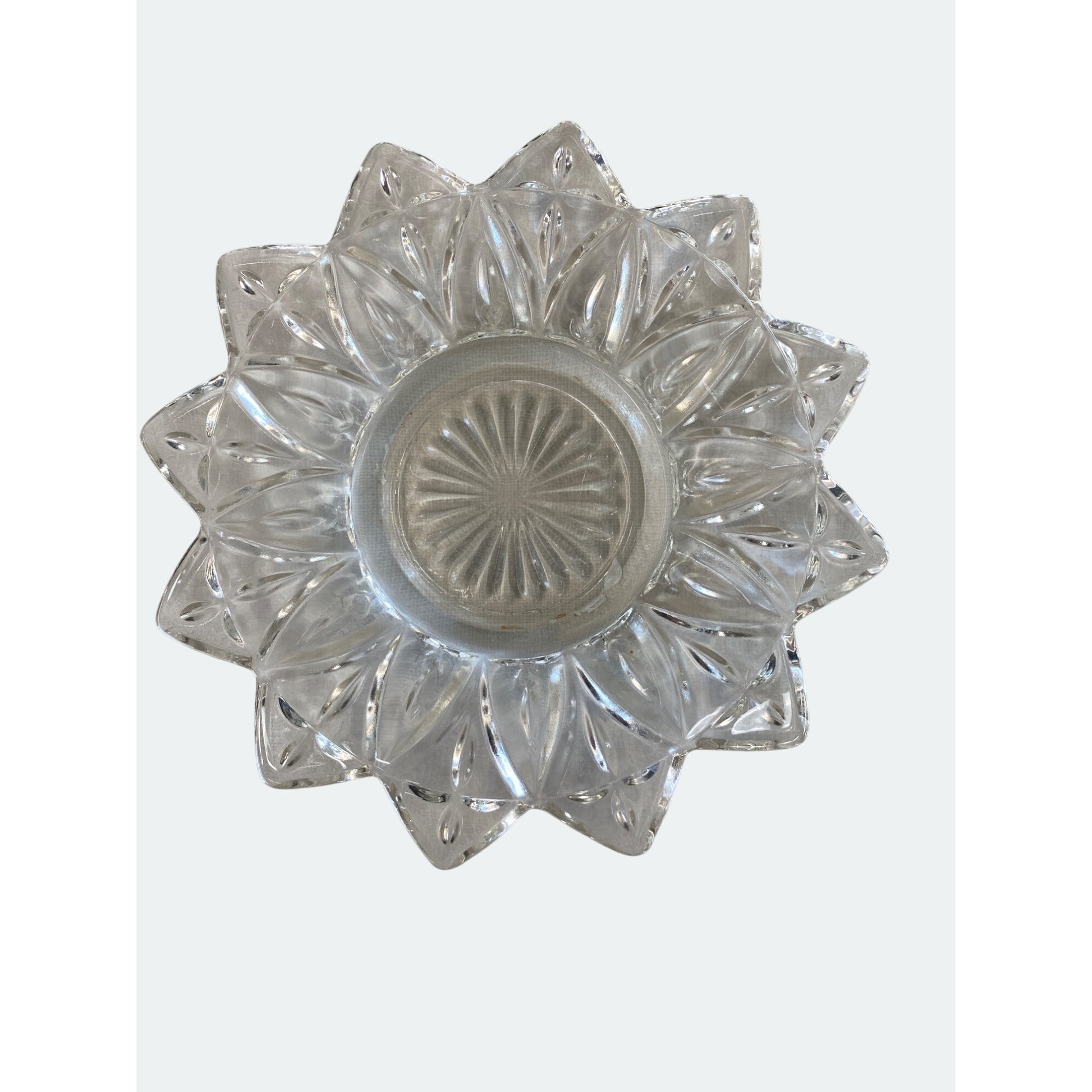 Enhance your table setting with these elegant vintage glass dishes designed in a striking starburst pattern. Versatile and durable for functional display.