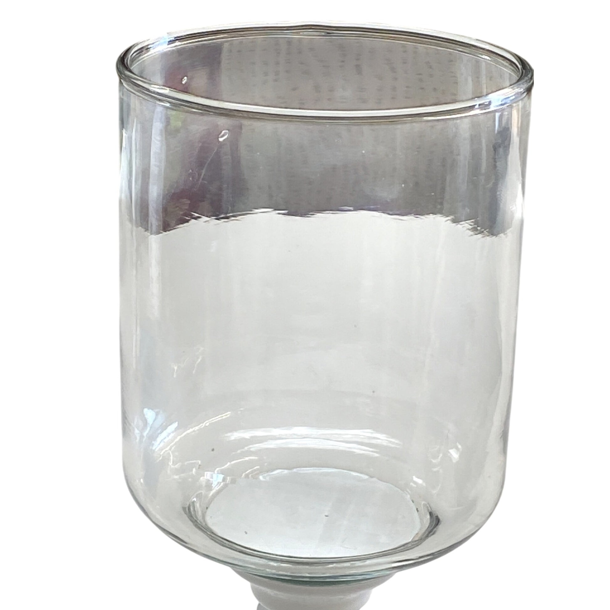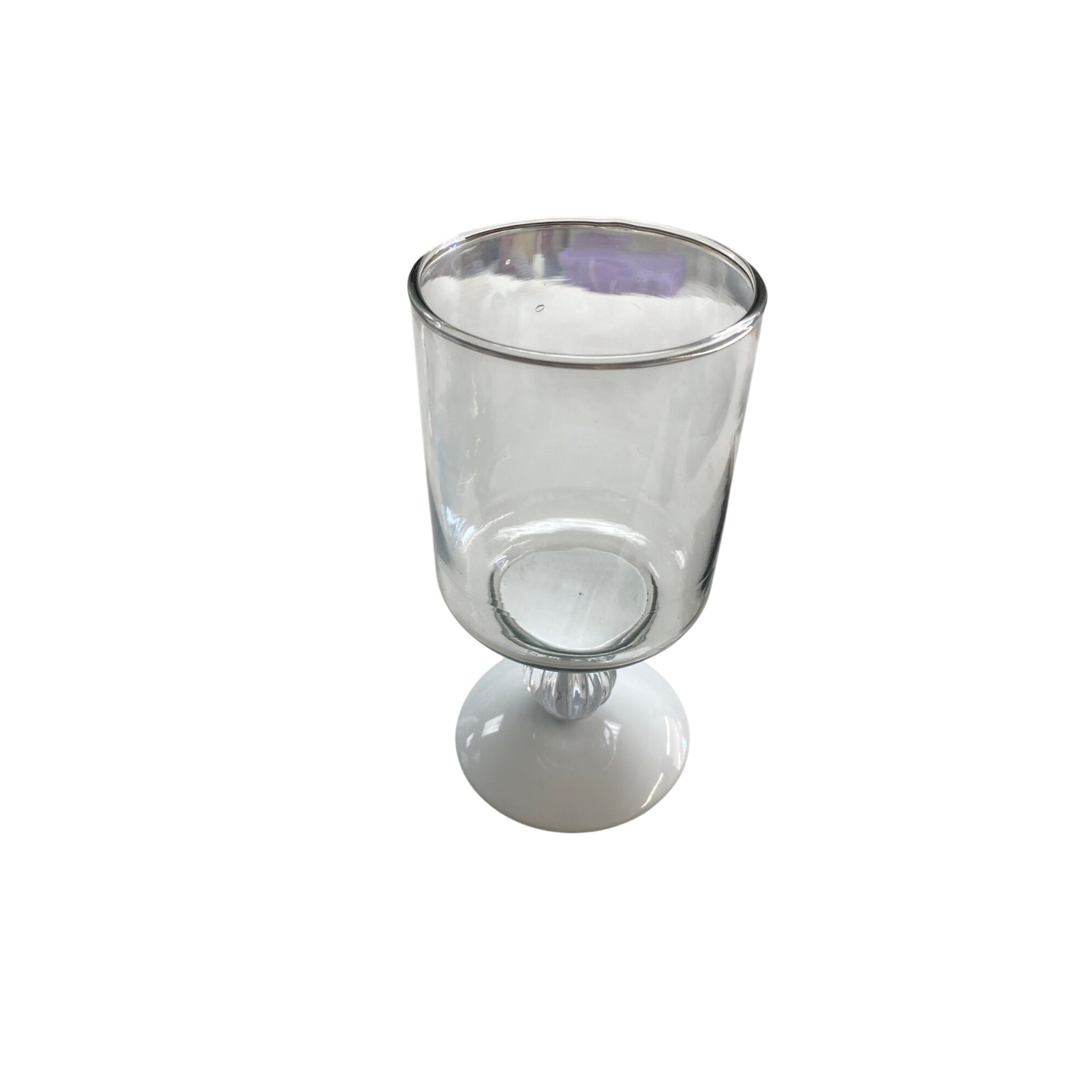 Enhance your home decor with this versatile glass and white metal pedestal piece. Its timeless design functions as a candle holder or a vase, adding sophistication.