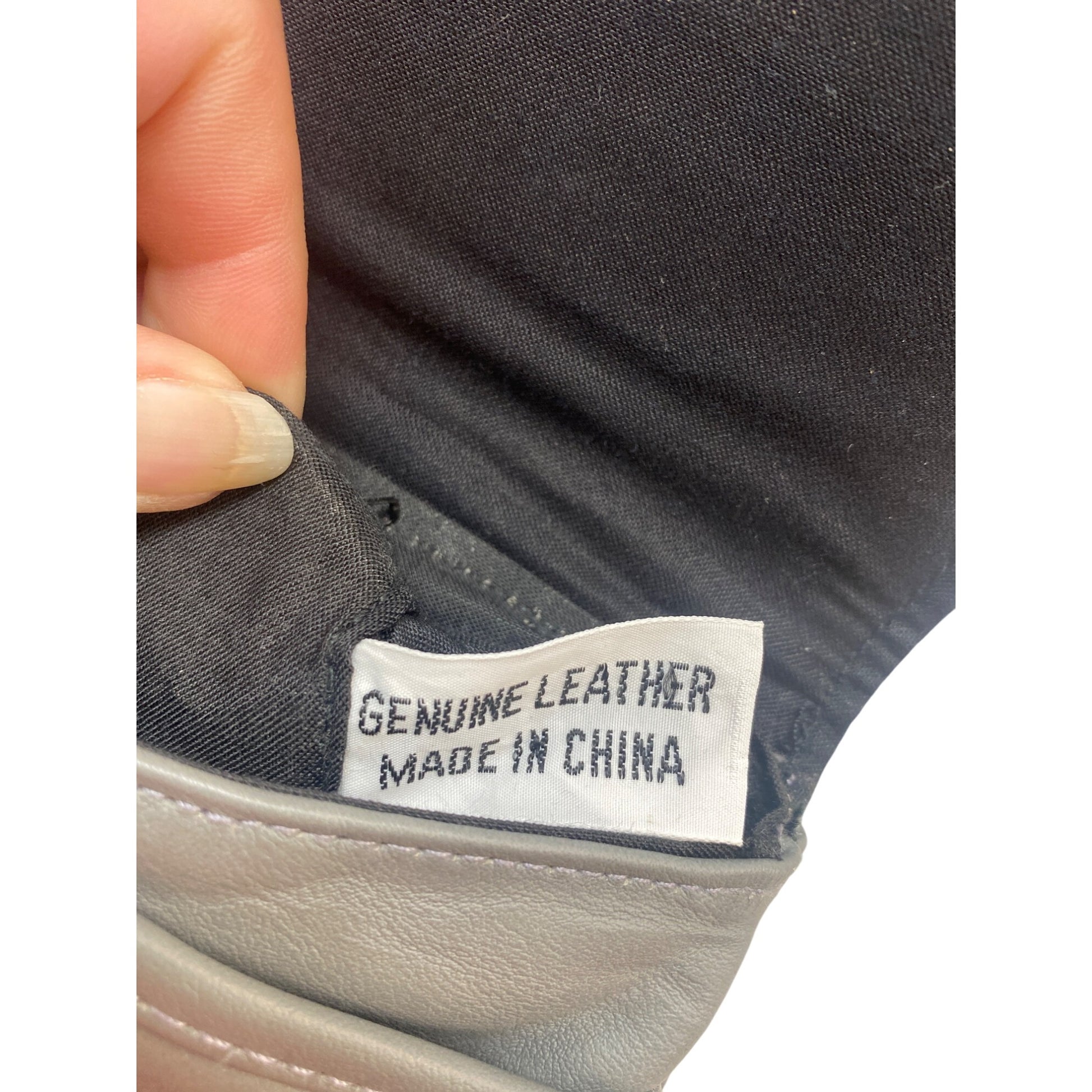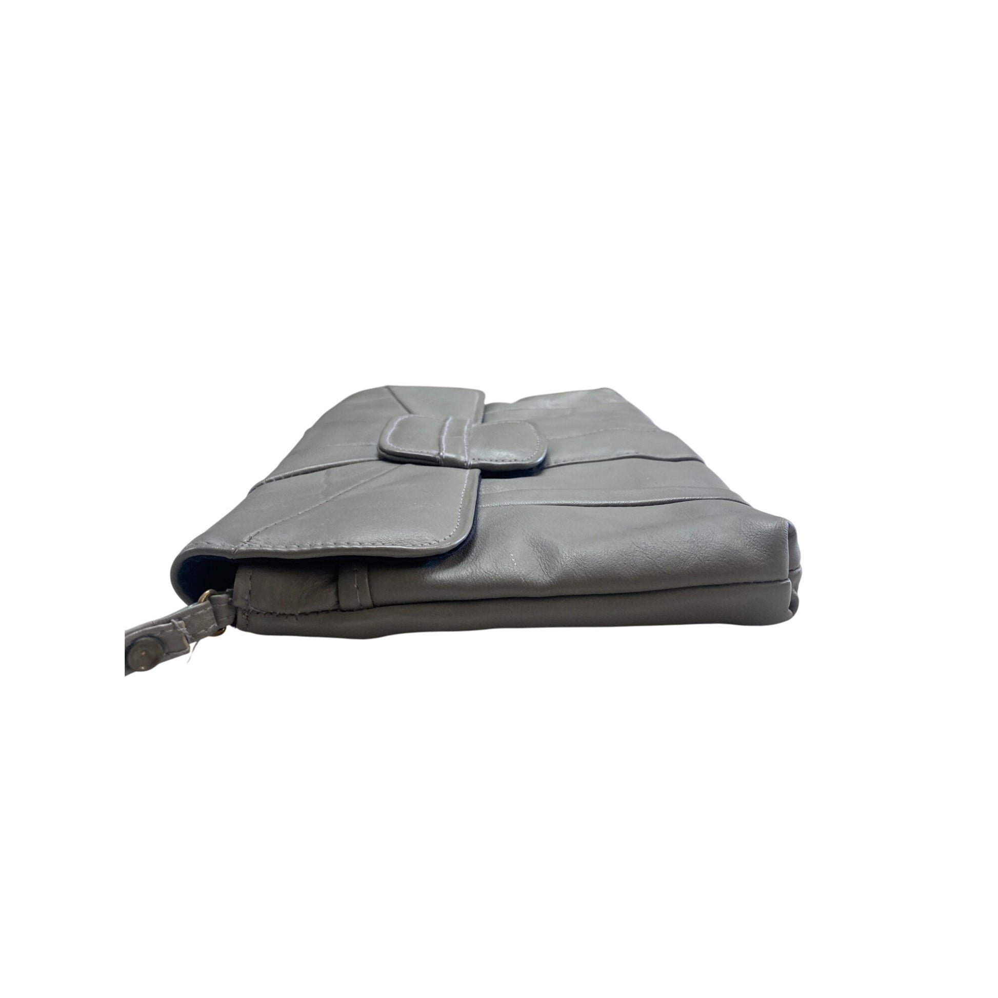 Elevate your style with this elegant gray leather clutch. Its versatile design, compact size, and wristlet strap make it a chic and practical choice.