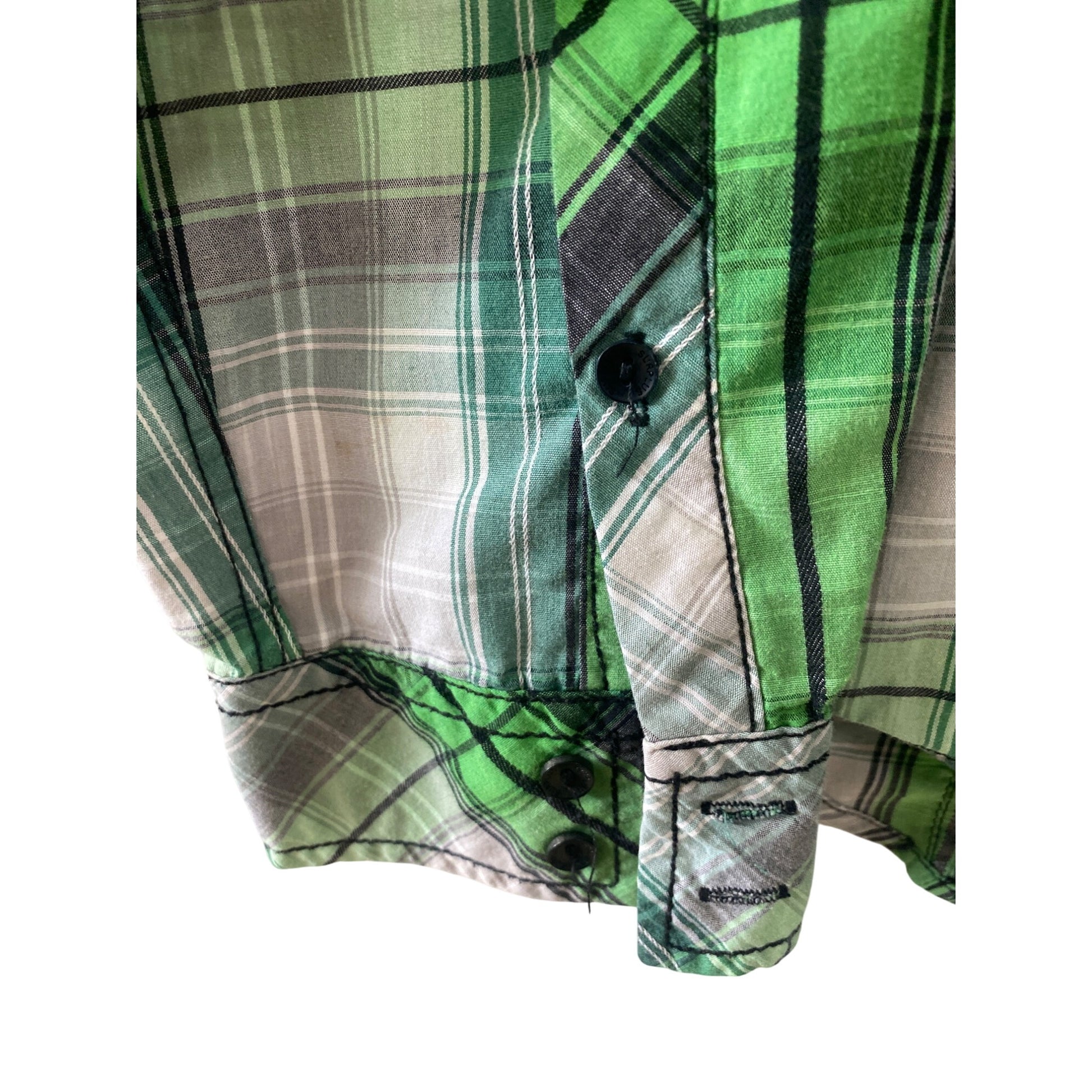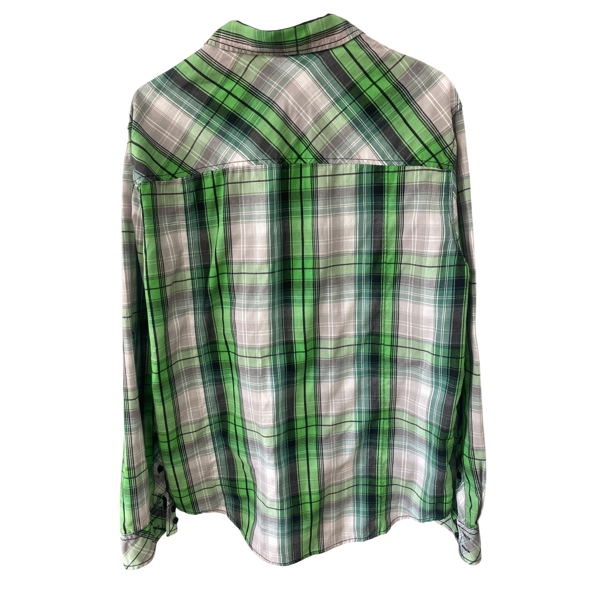Green & Gray Plaid Button-Up Shirt Surplus XL Casual Long Sleeve Cotton Blend