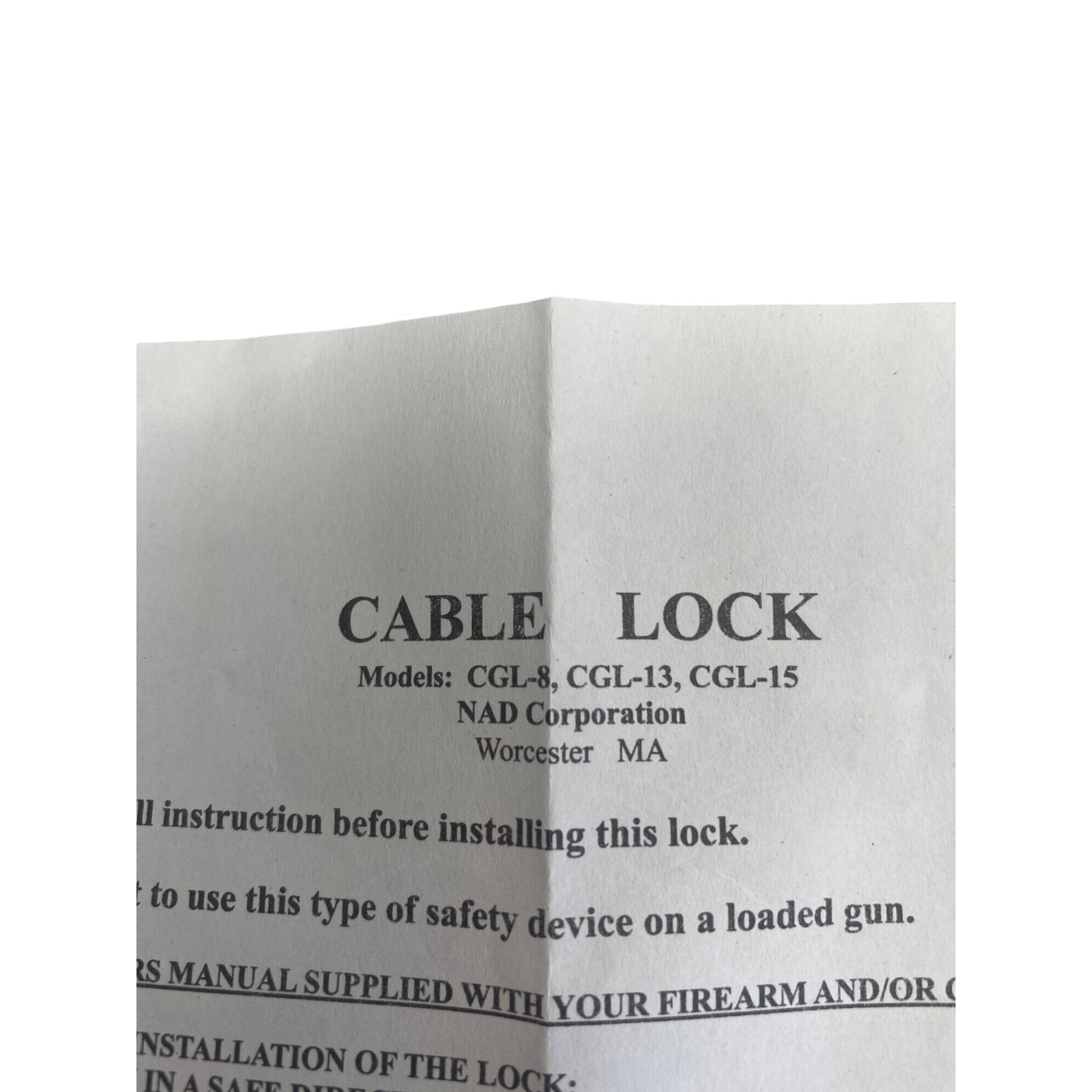 Gun Safety Cable Lock With Keys NAD Corp. Model CGL-15 Black