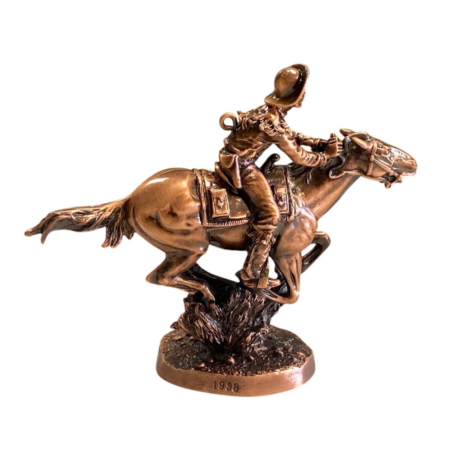 This Hallmark Keepsake ornament features a detailed Pony Express Rider from 1998, capturing the spirit of the Old West. Ideal for collectors or as a unique holiday gift.