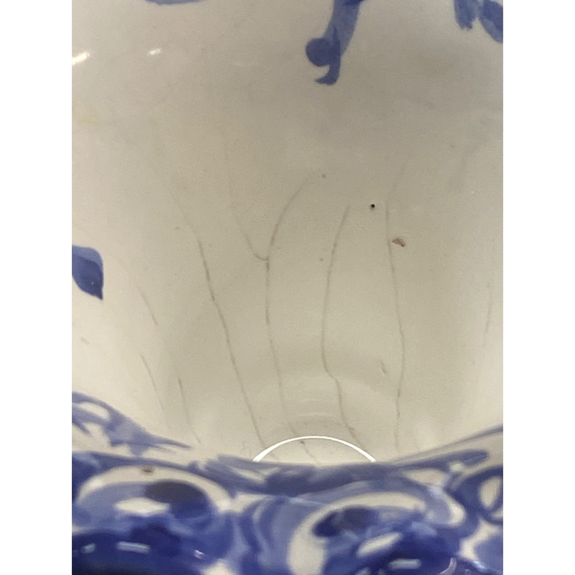 Hand-Painted Blue & White Ceramic Basket Vase With Floral Design Made In Portugal