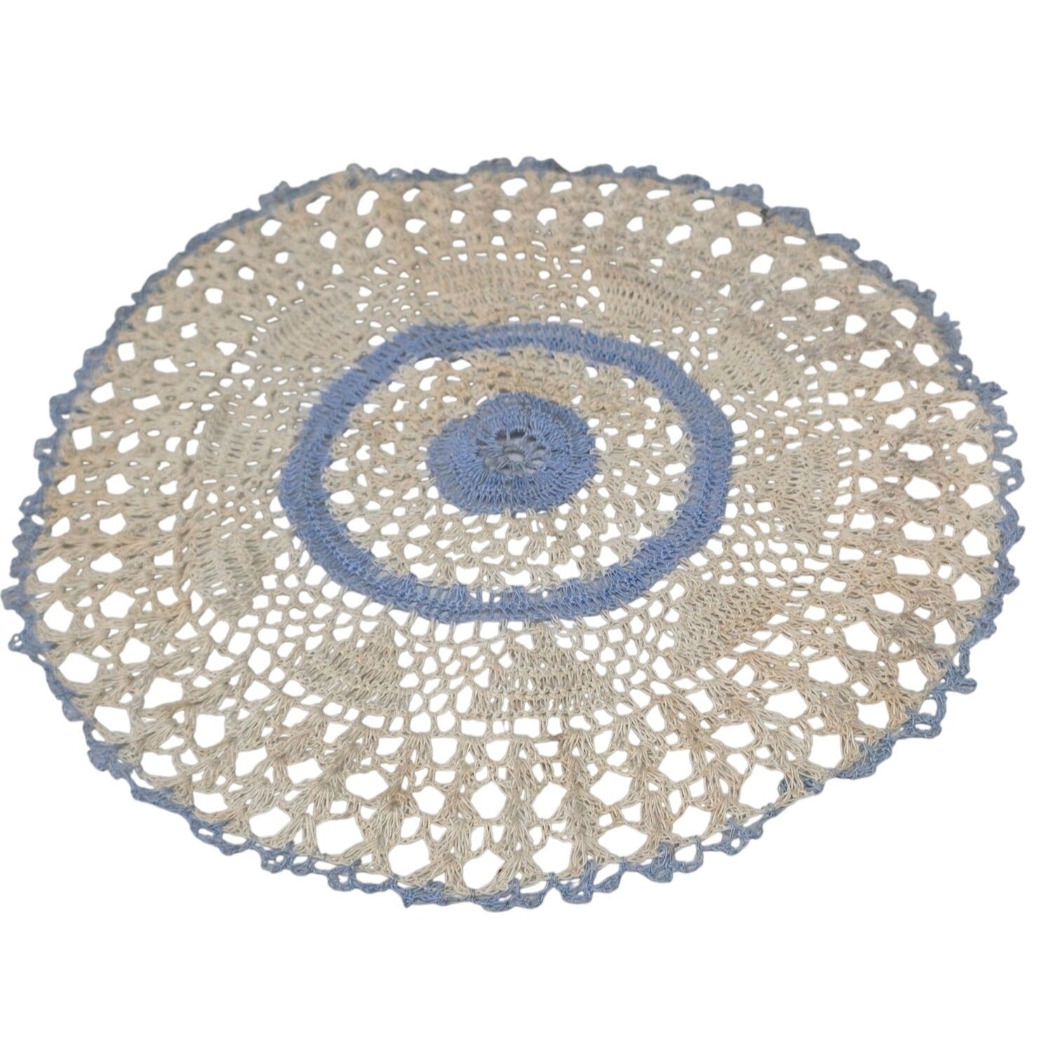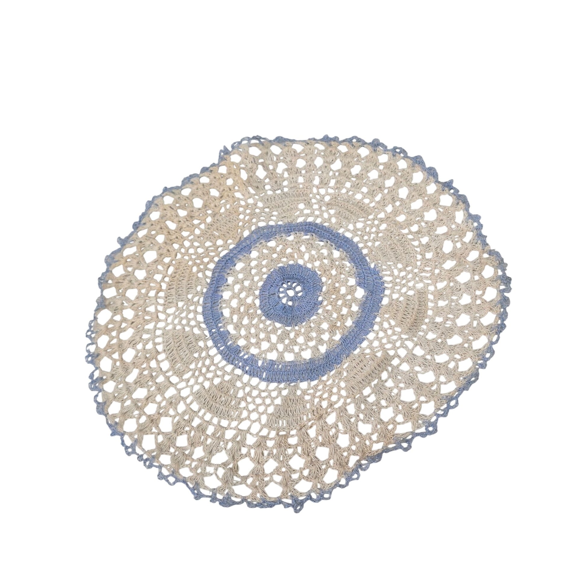 Handmade Beige & Blue Crochet Doily