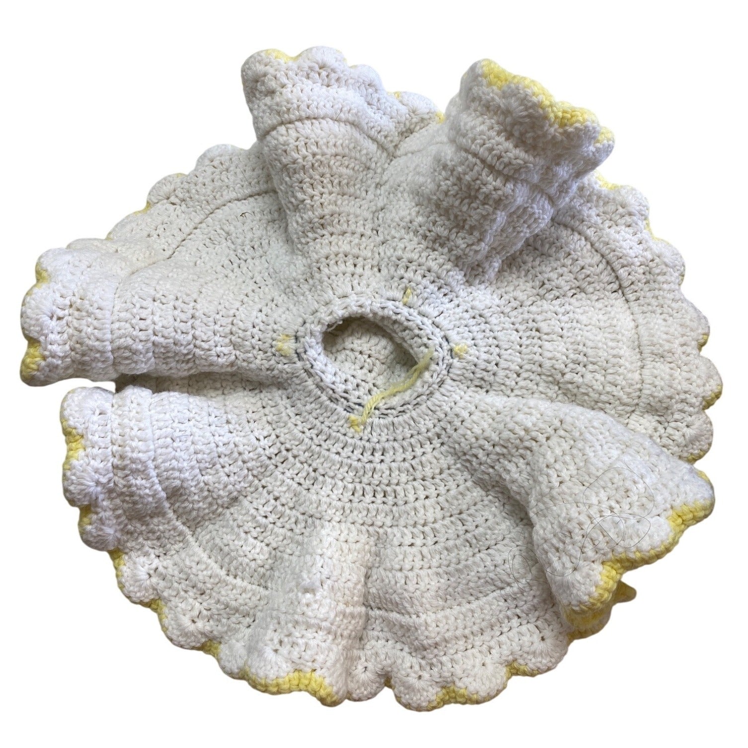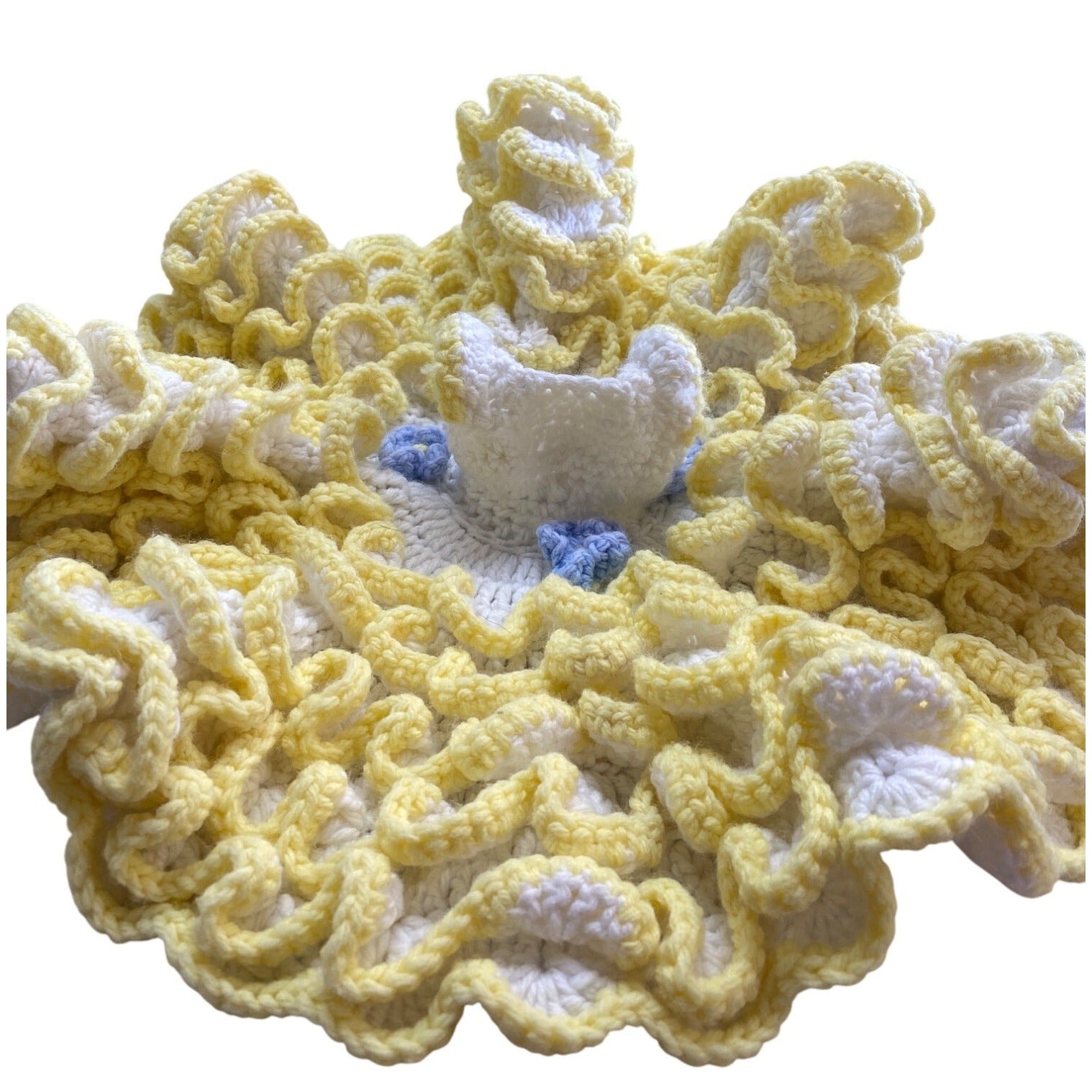 Add charm and elegance to your home with this handcrafted crochet decorative doll dress, featuring a vibrant ruffled design and delicate floral accents.