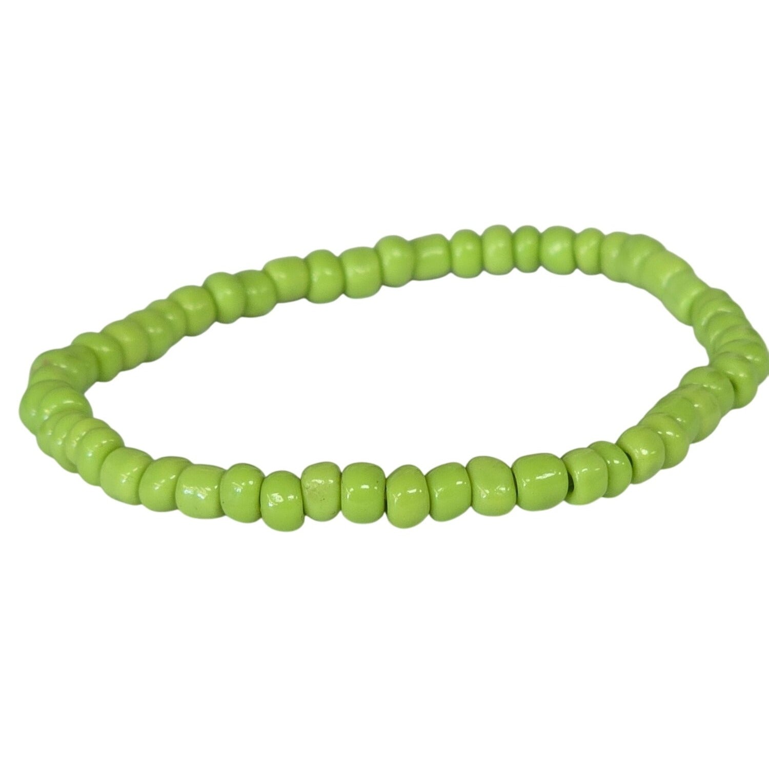 Elevate your style with this vibrant lime green handmade beaded stretch bracelet. Its elastic design ensures a comfortable fit, while the glossy beads add a pop of color to any outfit. Whether worn alone or stacked, it effortlessly enhances your look, making it a versatile accessory for daily wear.