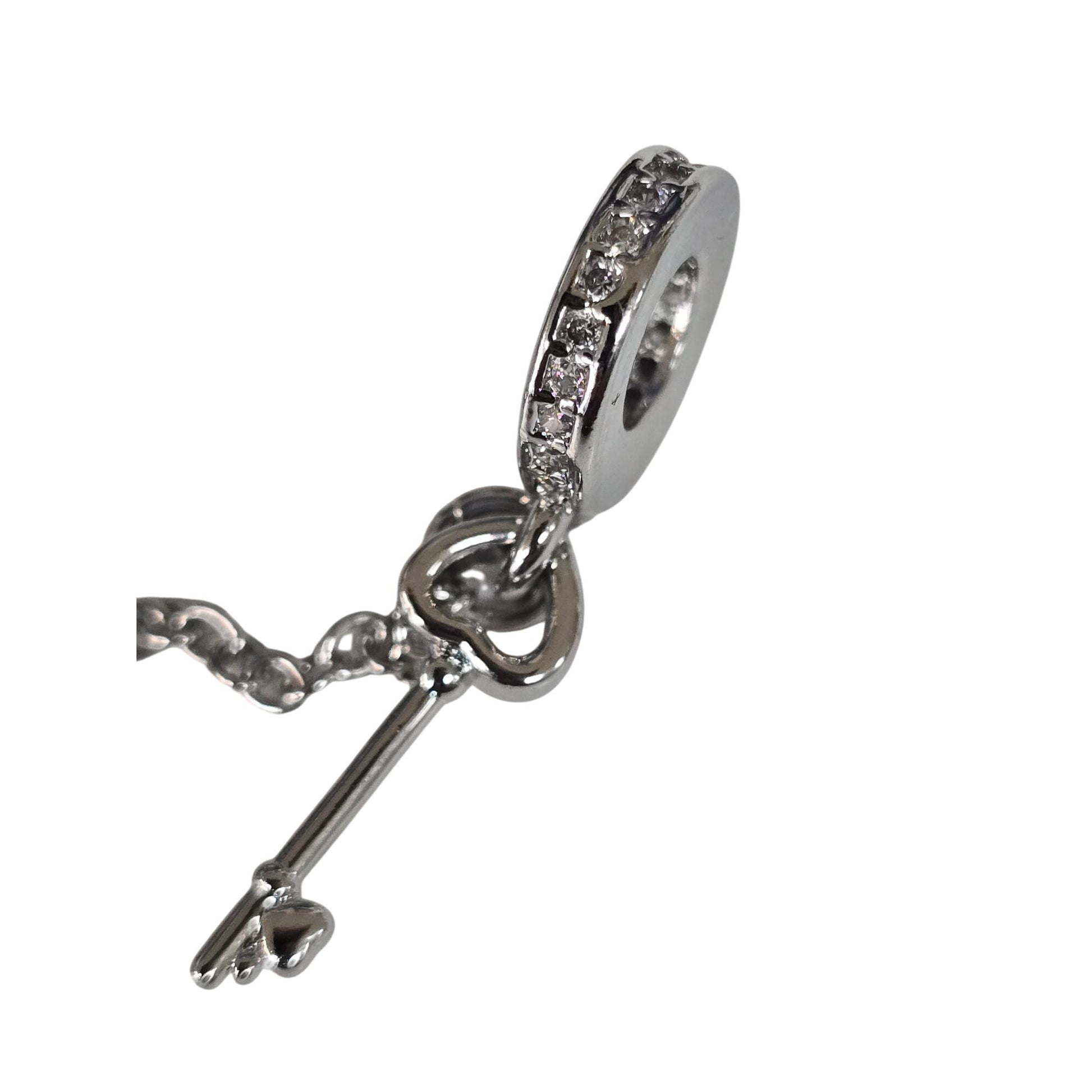 Elevate your jewelry with this heart-shaped charm lock and key set, crafted from silver for a touch of elegance. Its design adds sophistication to bracelets, making it a standout accessory that blends seamlessly with any collection. The intricate details reflect quality craftsmanship, offering both style and security.