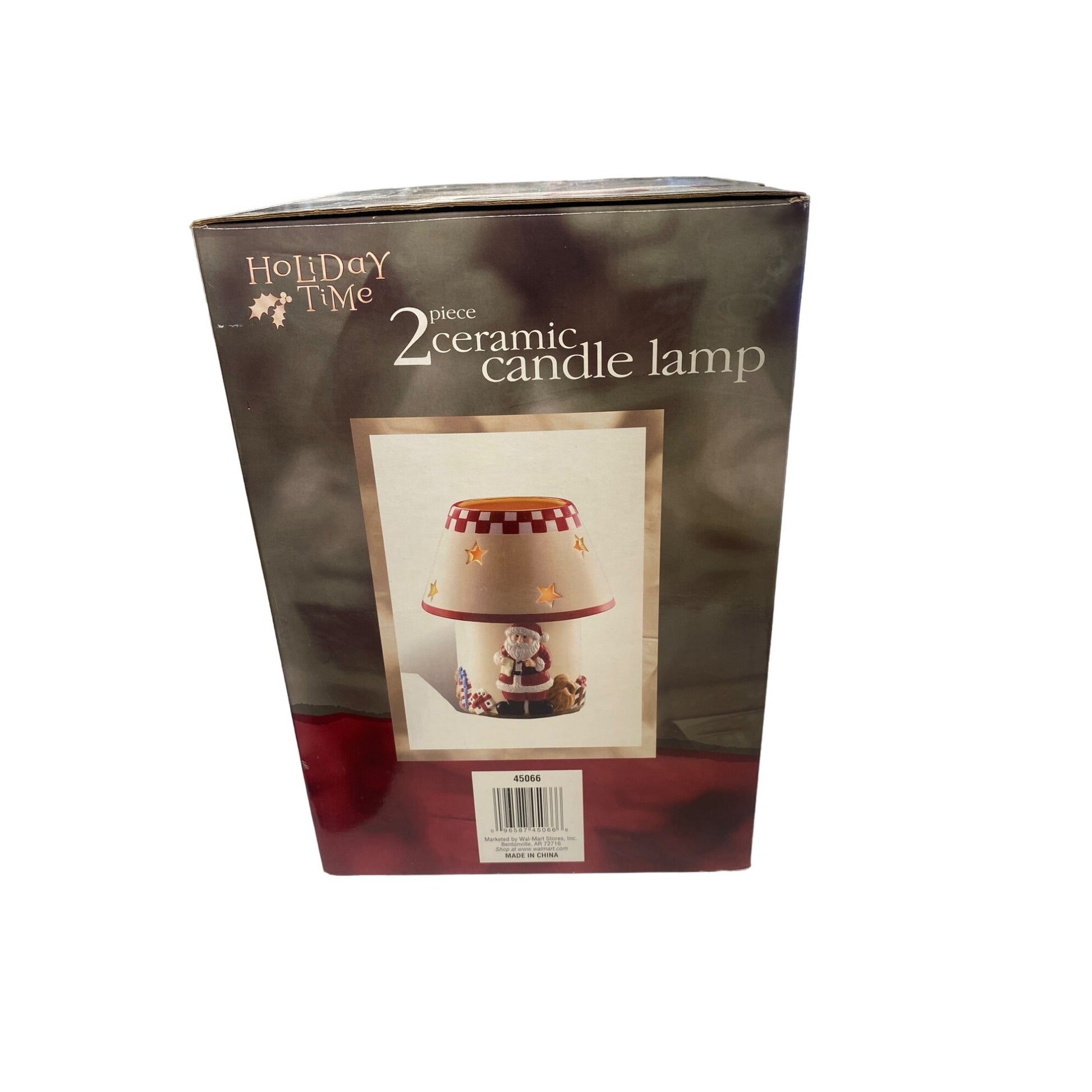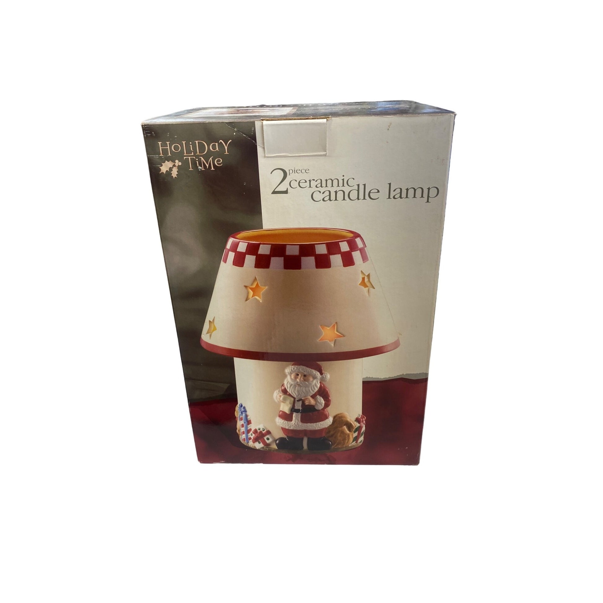 Holiday Time Ceramic Candle Lamp W/ Santa & Fireplace Two-Piece Festive Decor Star Cutouts 9" Tall