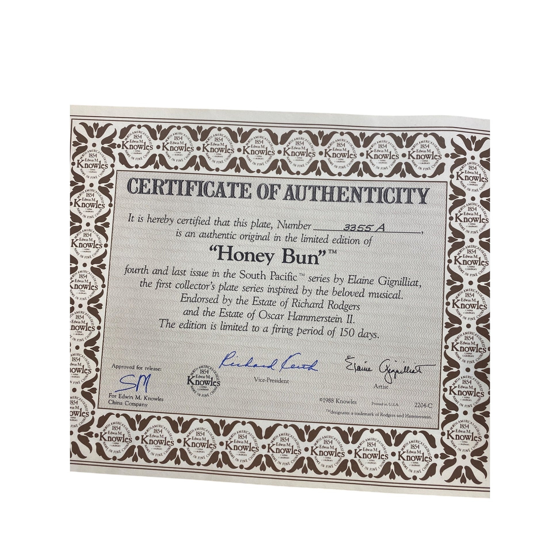 "Honey Bun" Knowles Collectors Plate By Elaine Gignilliat 1988 South Pacific Fourth Issue W/ COA Limited Edition