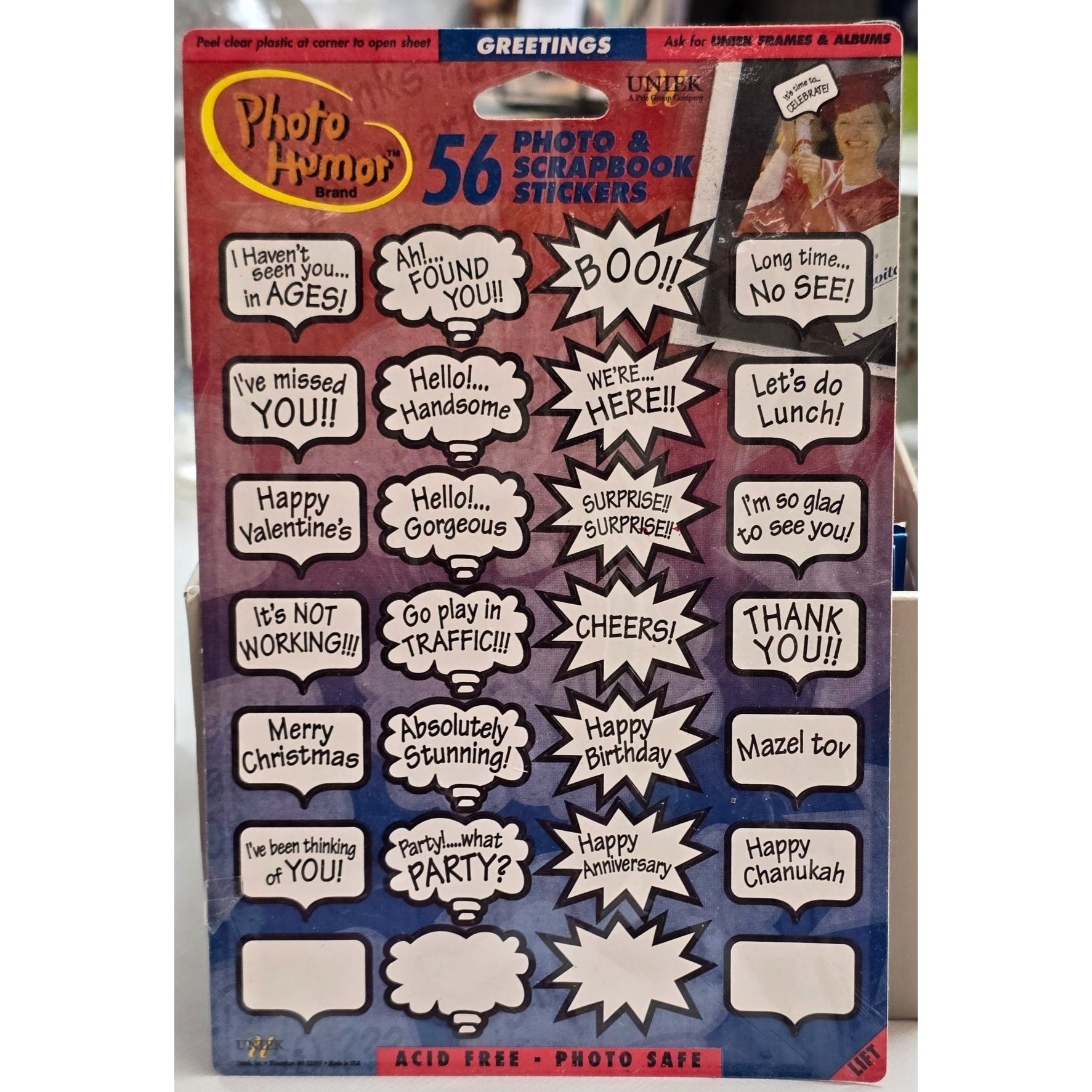 Enhance your scrapbooking projects with these fun and whimsical stickers. Featuring a variety of greetings and expressions, they bring humor and personality to your pages. Acid-free and photo-safe, they ensure your memories remain preserved. Ideal for personalizing gifts, cards, or albums, these stickers add a delightful touch.