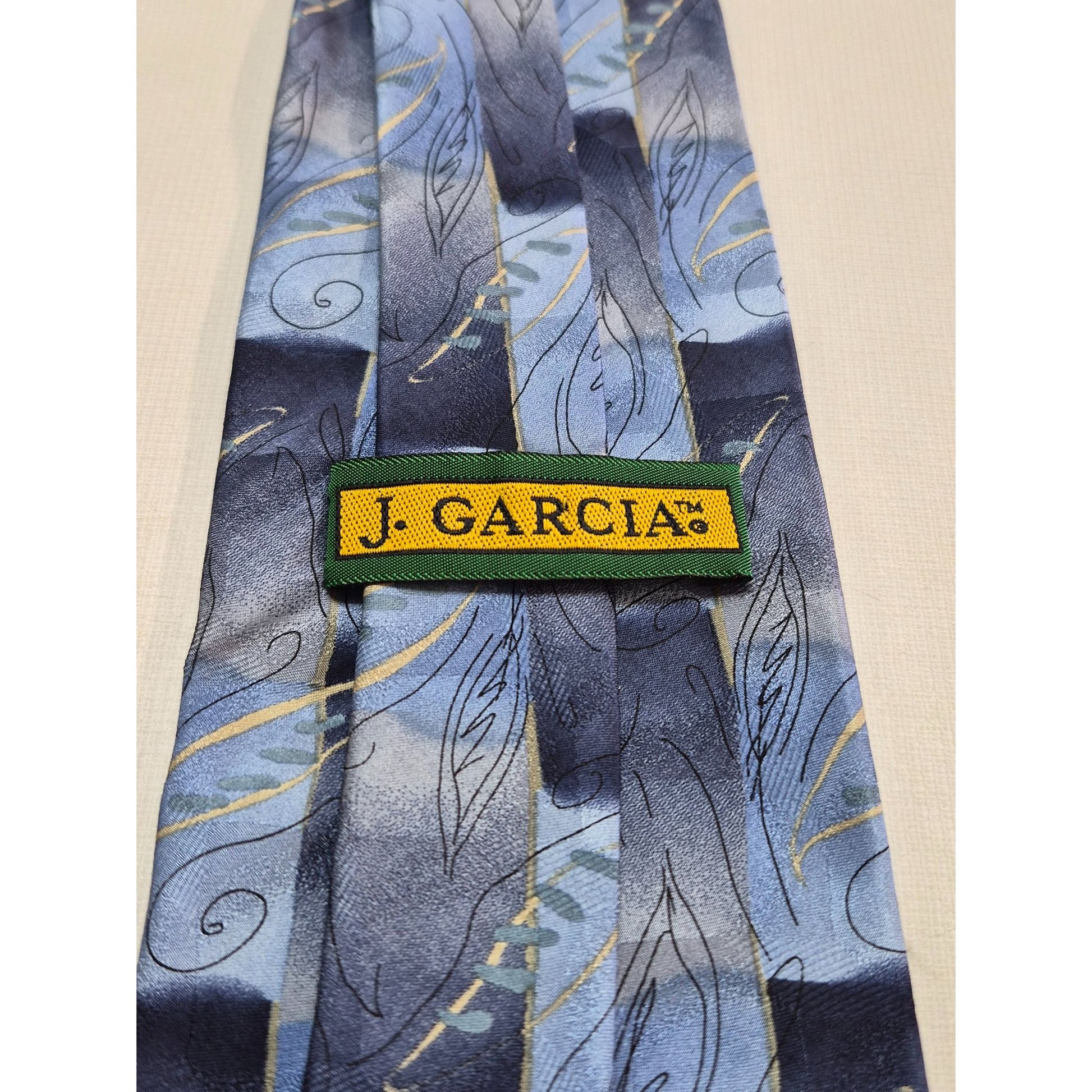 J. Garcia Silk Tie Collection Seventeen Mens Blue Leaf Pattern Necktie 65"