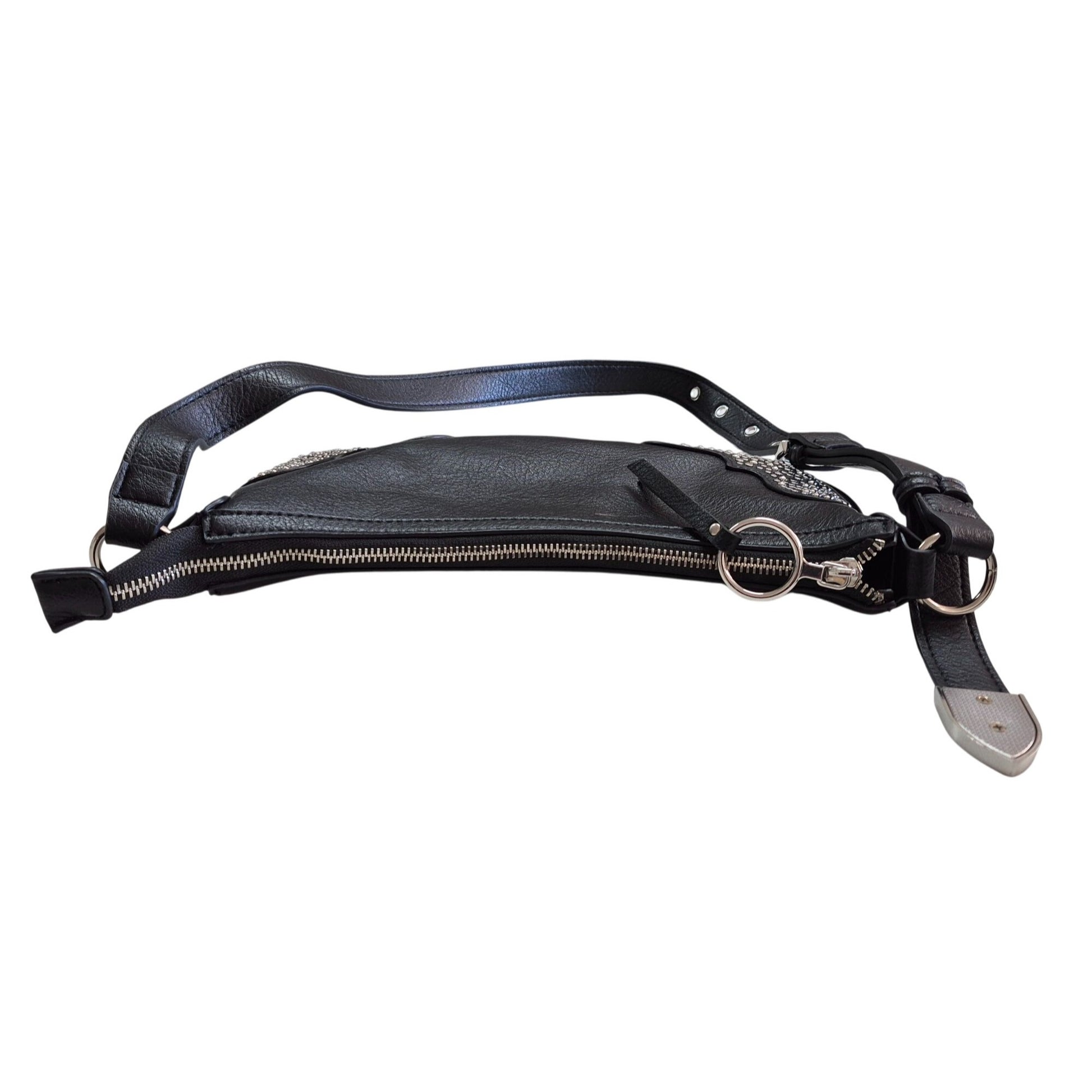 Elevate your style with this Jessica Simpson black shoulder bag. Featuring a studded design and spacious interior, it's crafted from durable synthetic materials. The adjustable strap offers versatility for any occasion, while the floral-patterned inner lining adds a touch of elegance. A statement accessory that effortlessly combines fashion and function.