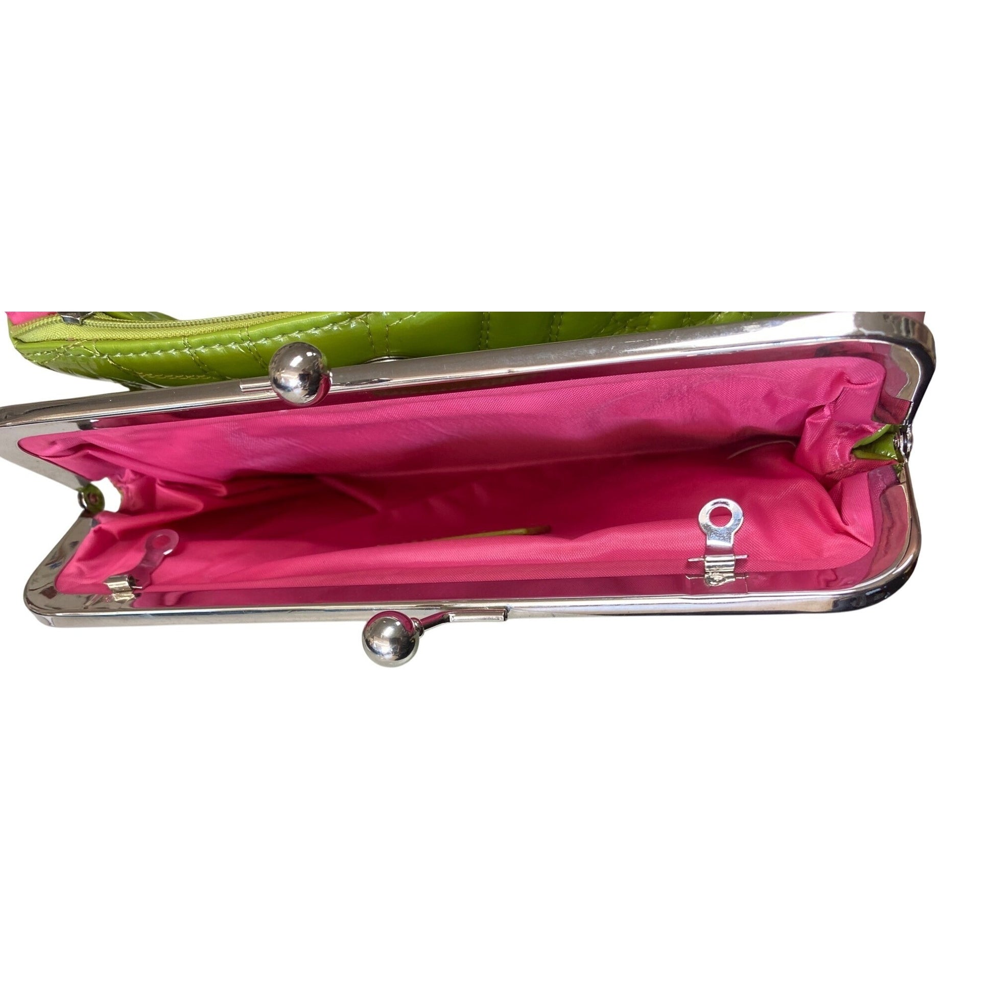 Kristine Lime Green Clutch Crocodile Pattern Pink Interior