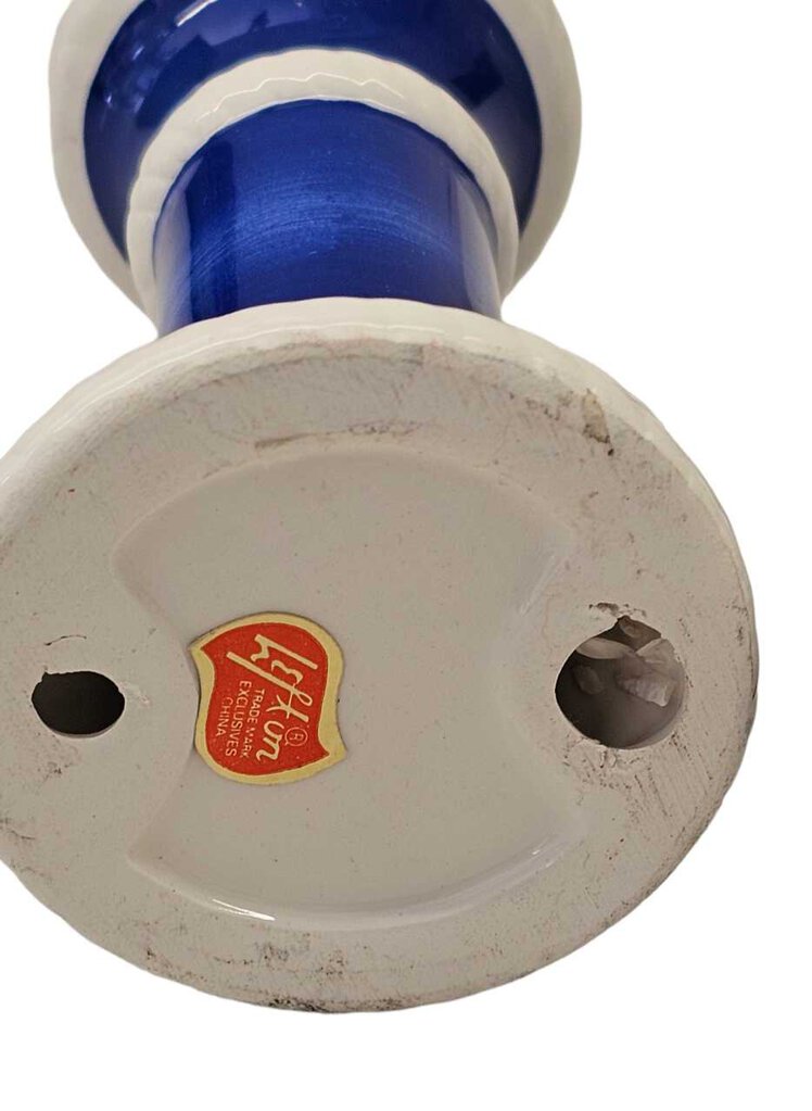 Vintage Lefton Ceramic Blue & White Candle Holders Pair 6.5" Tall