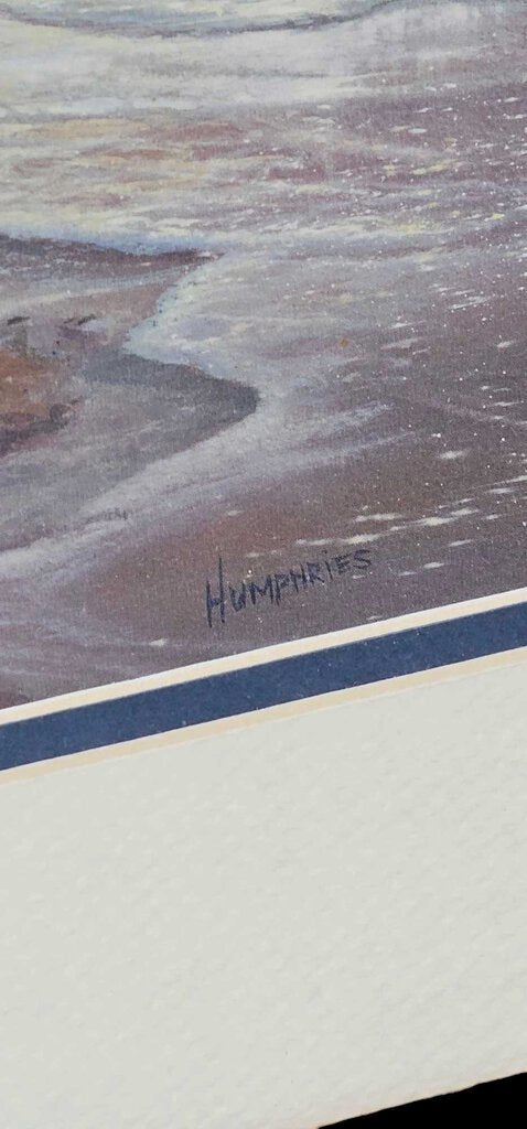 The print is 15" W x 11" h and matted in a 22.5" x 18.75" wood frame. Gorgeous condition.
