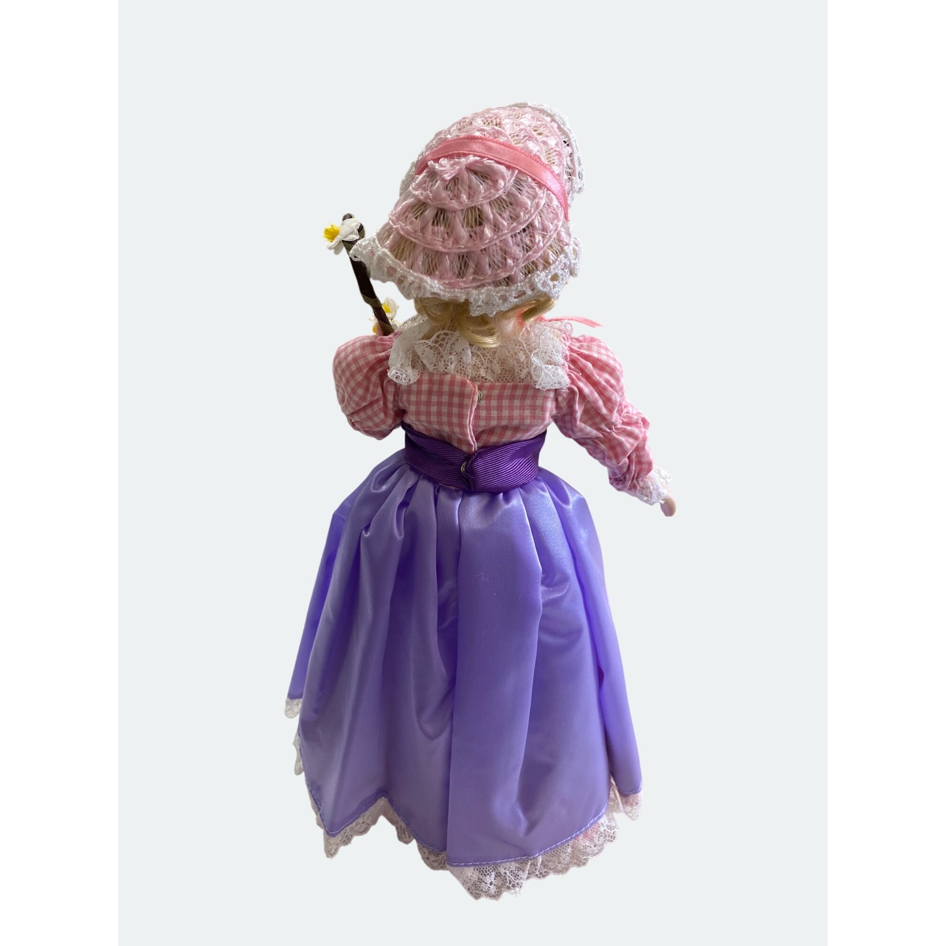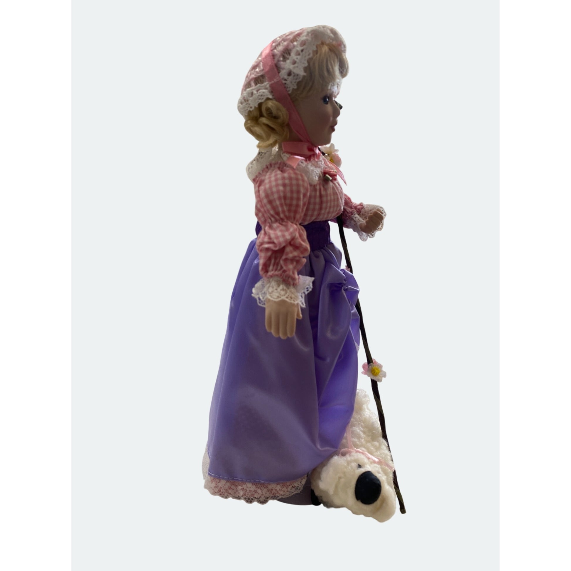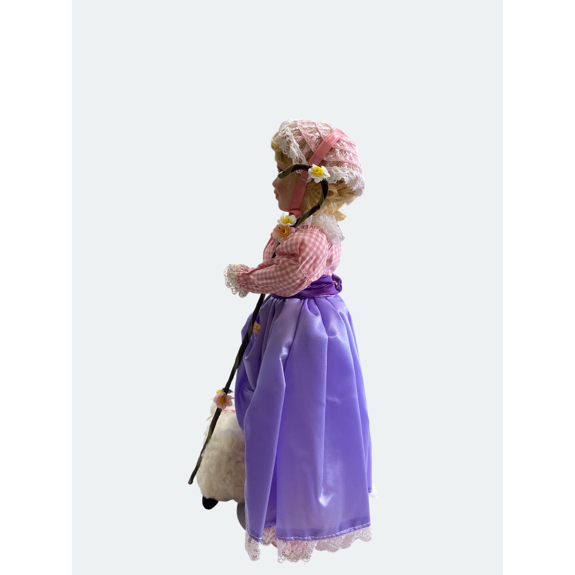 This collectible porcelain doll exudes charm with its intricate details, vibrant attire, and adorable sheep companion. A timeless addition to any collection.