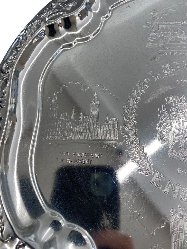 London England Souvenir Silver Tray House of Parliament Westminster Abbey Tower