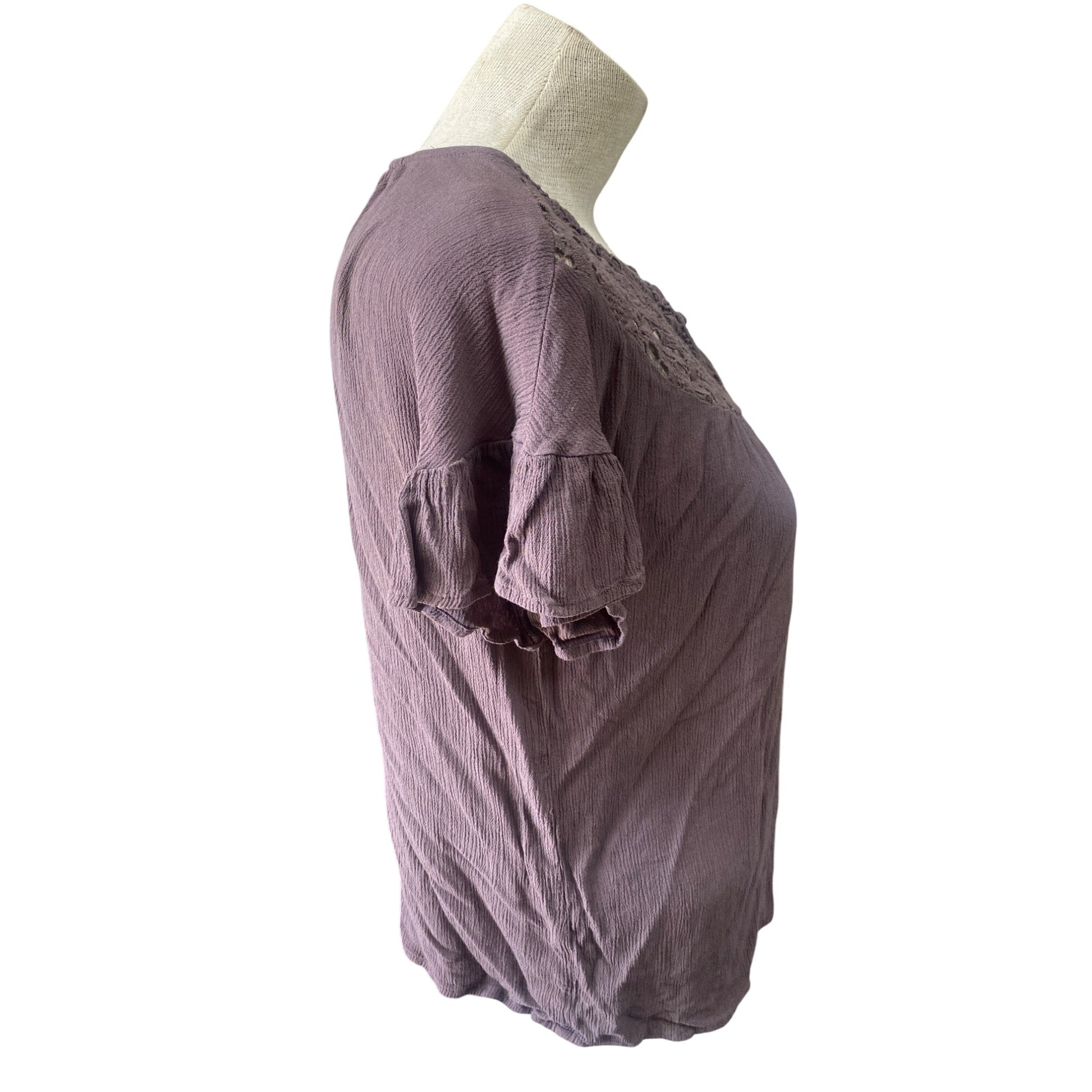 Maurices Womens Boho Blouse Large With Lace Detail & Tie Neck