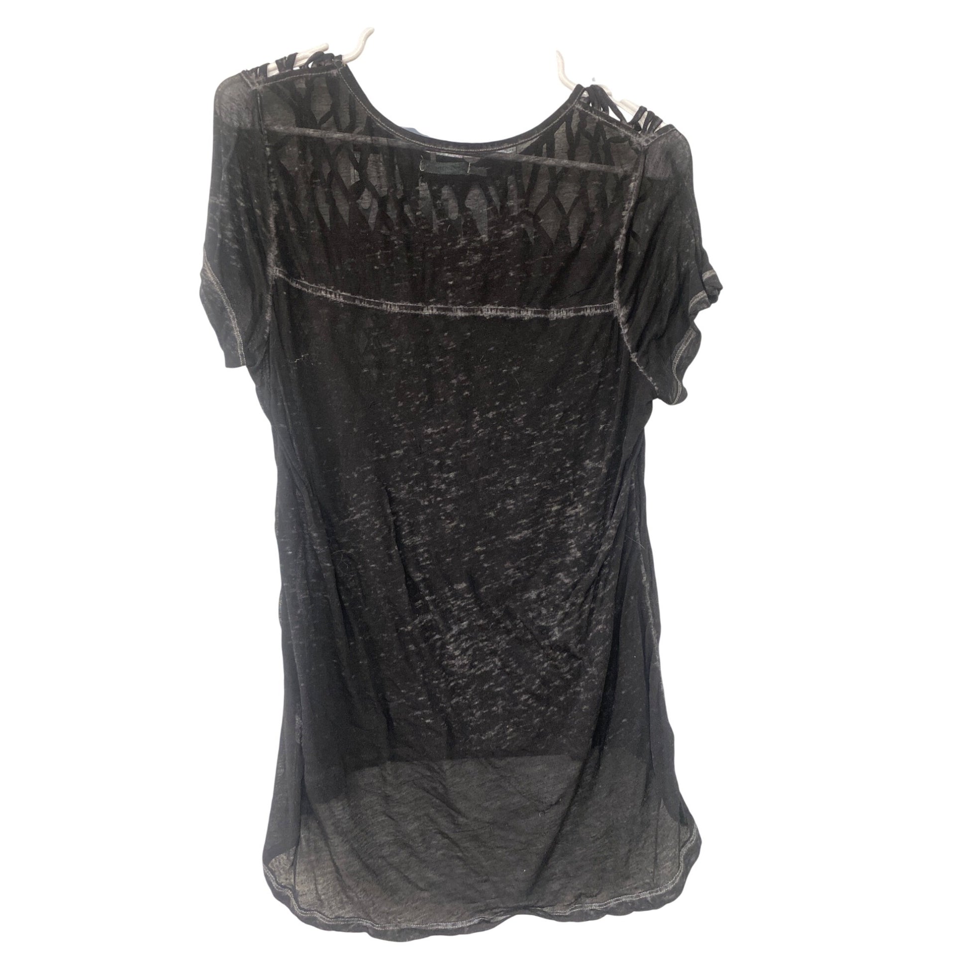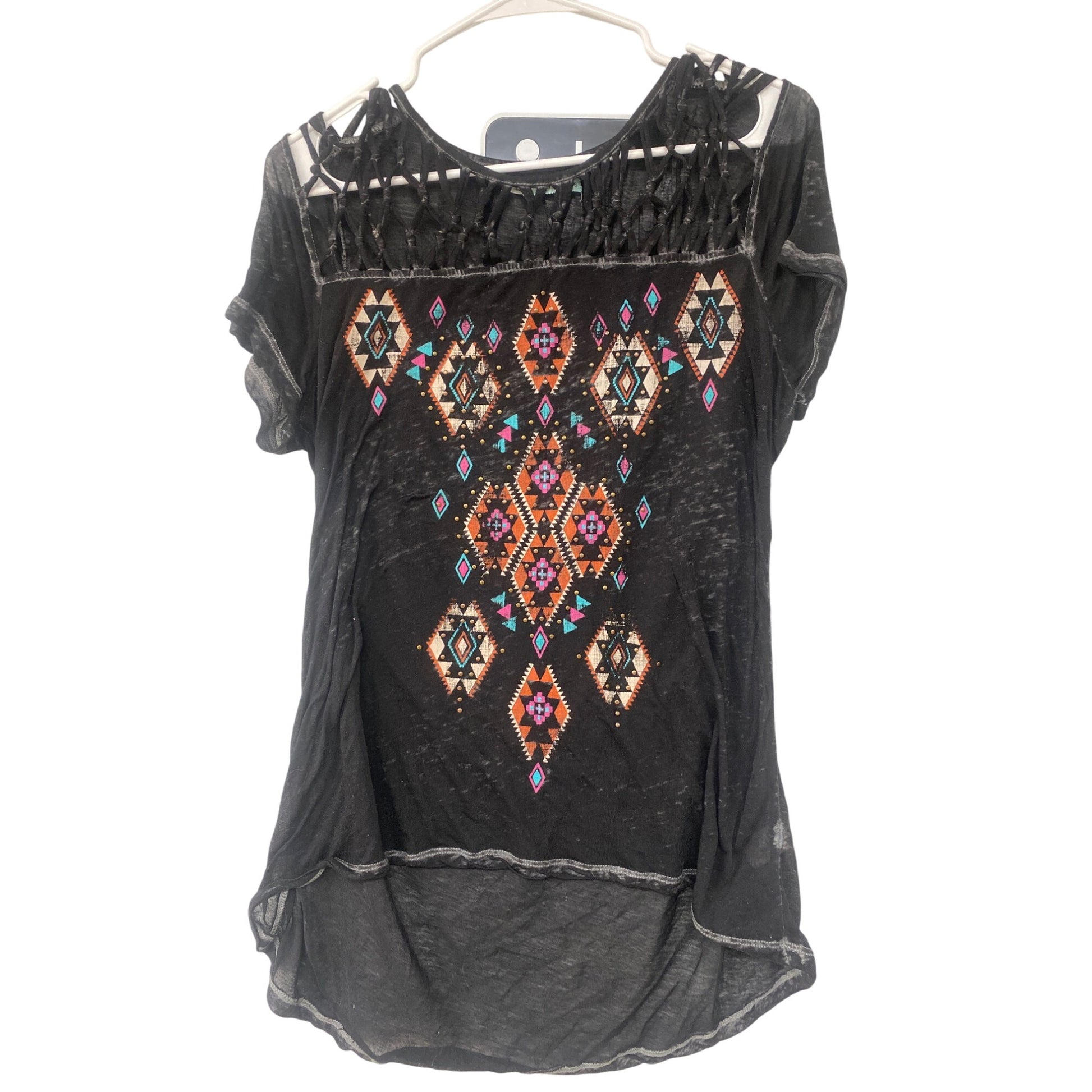 Maurices Womens Large Black Sheer Top With Aztec Print & Knotted Neckline