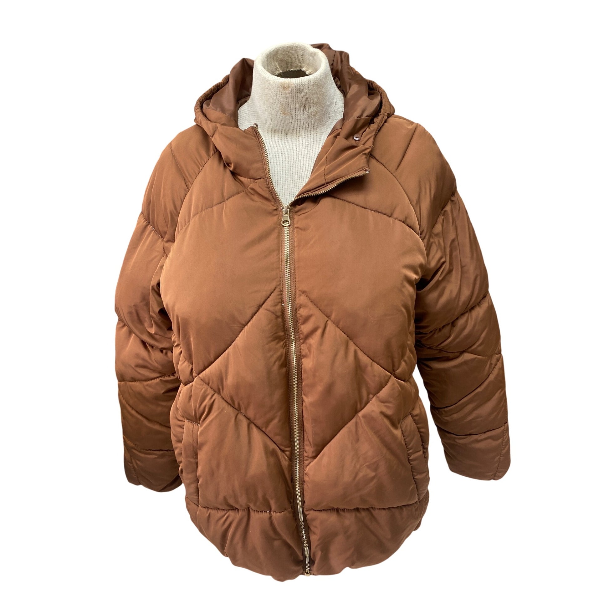Maurices Womens XL Brown Quilted Puffer Jacket With Hood & Zip Closure