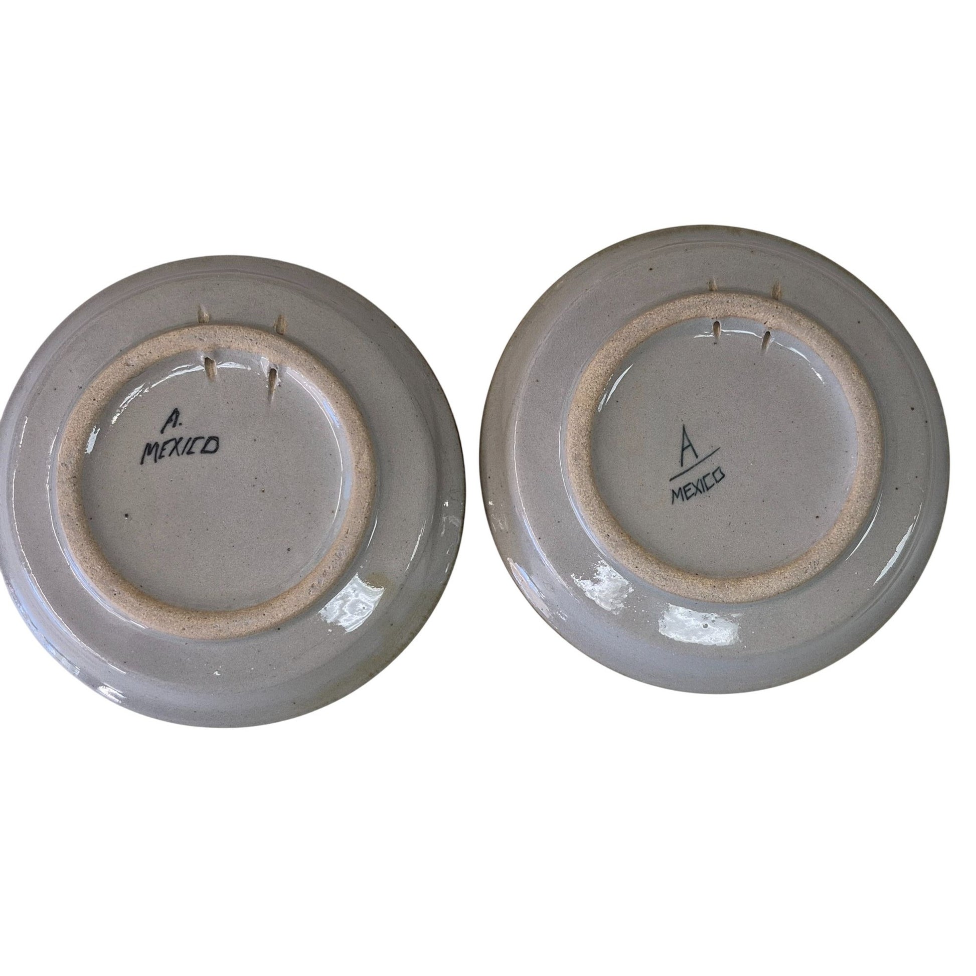 These Mexican pottery plates feature a hand-painted design of a farmer with cacti, bringing a touch of rustic charm to your dining experience. Perfect for collectors of unique and artisanal pieces, these plates showcase traditional craftsmanship. Enhance your home decor with these decorative yet functional works of art.