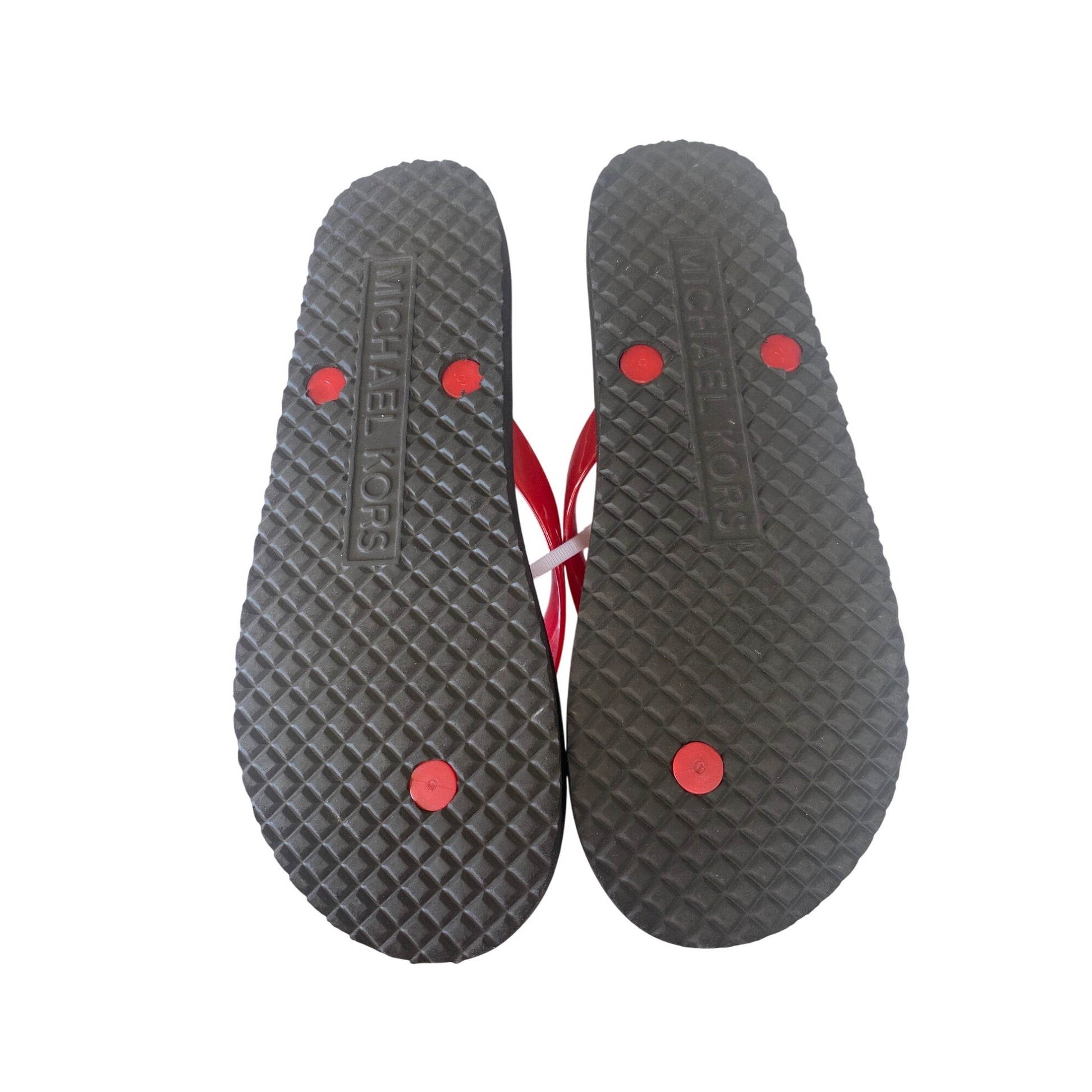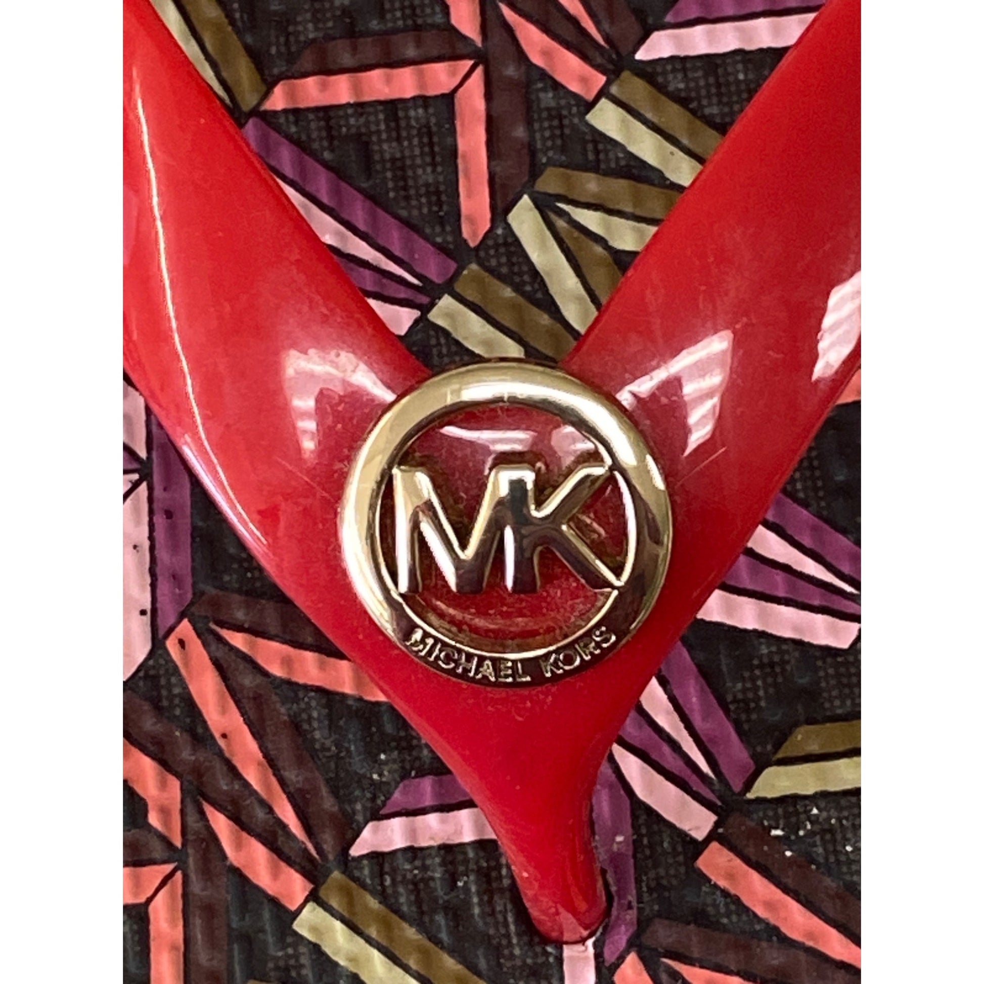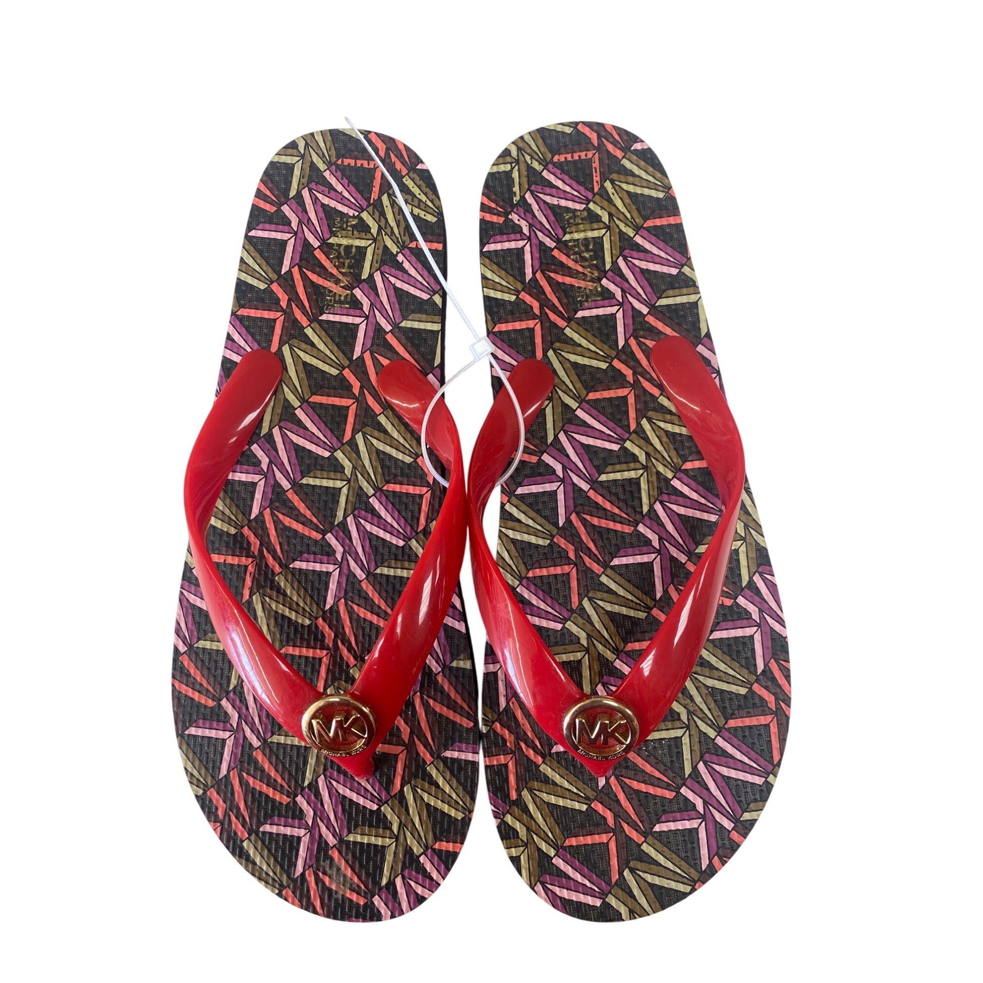 Michael Kors Womens Red & Multicolor Flip-Flops With Gold MK Logo Size 8