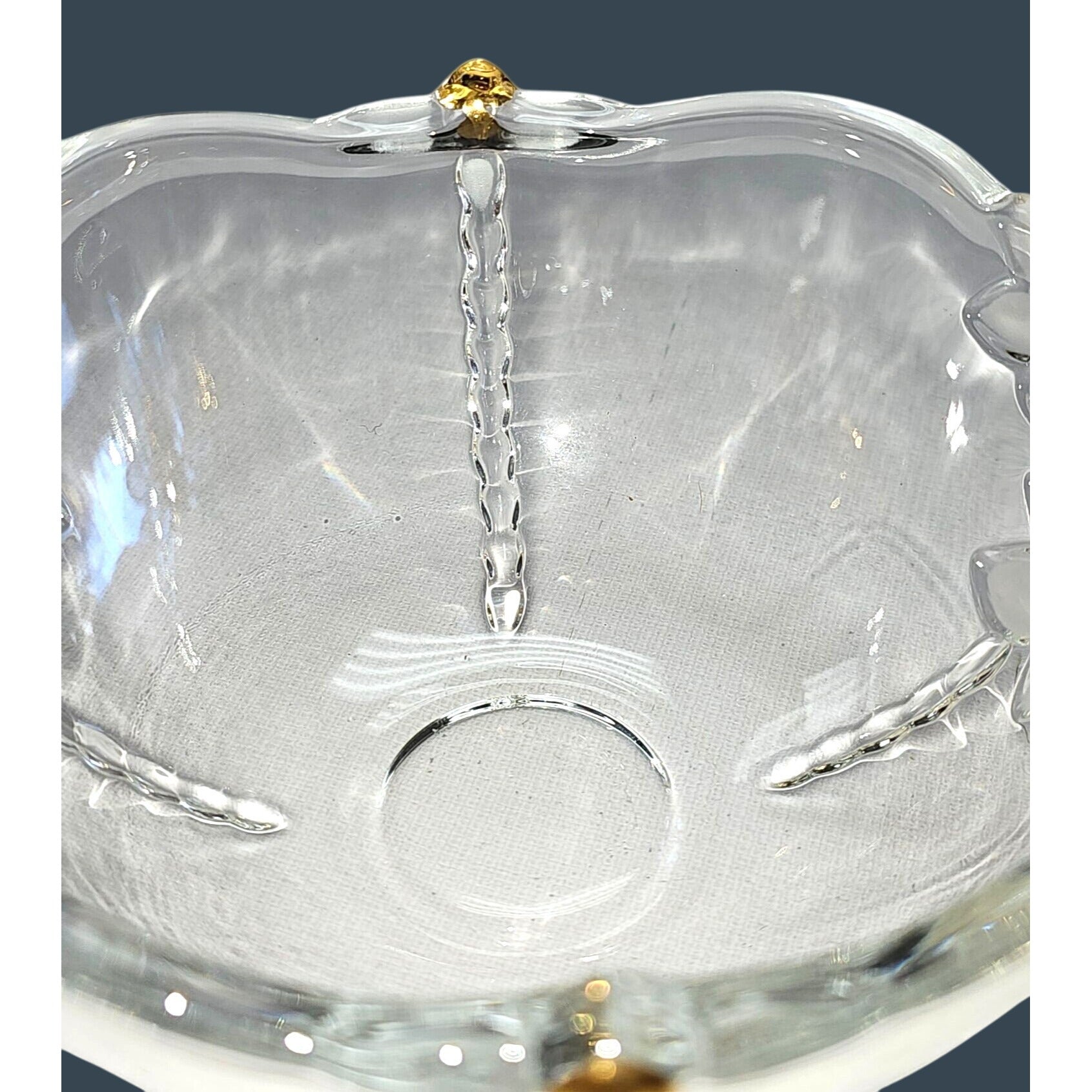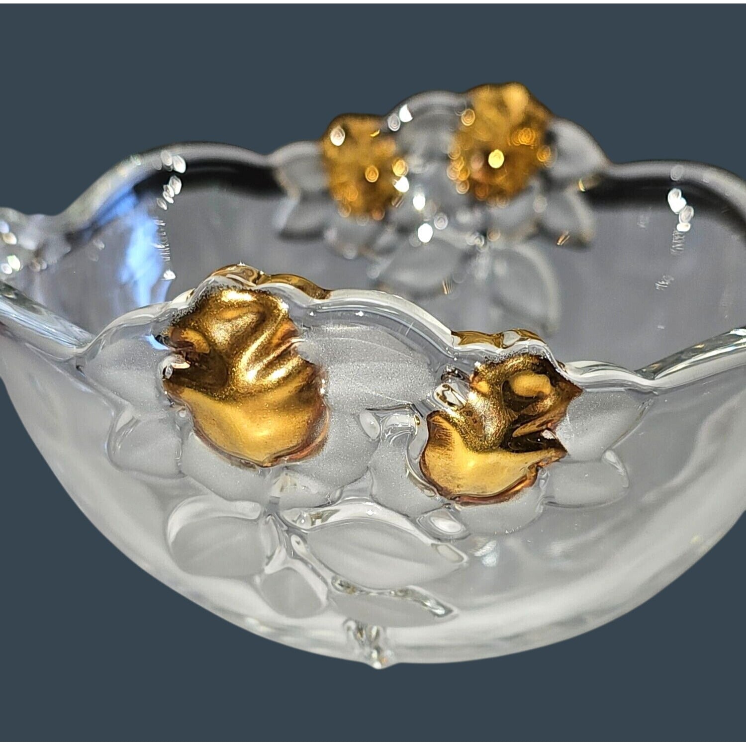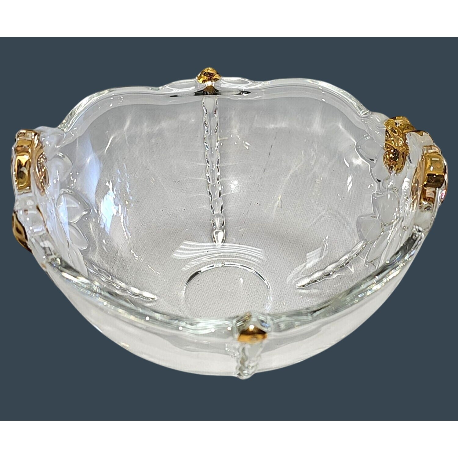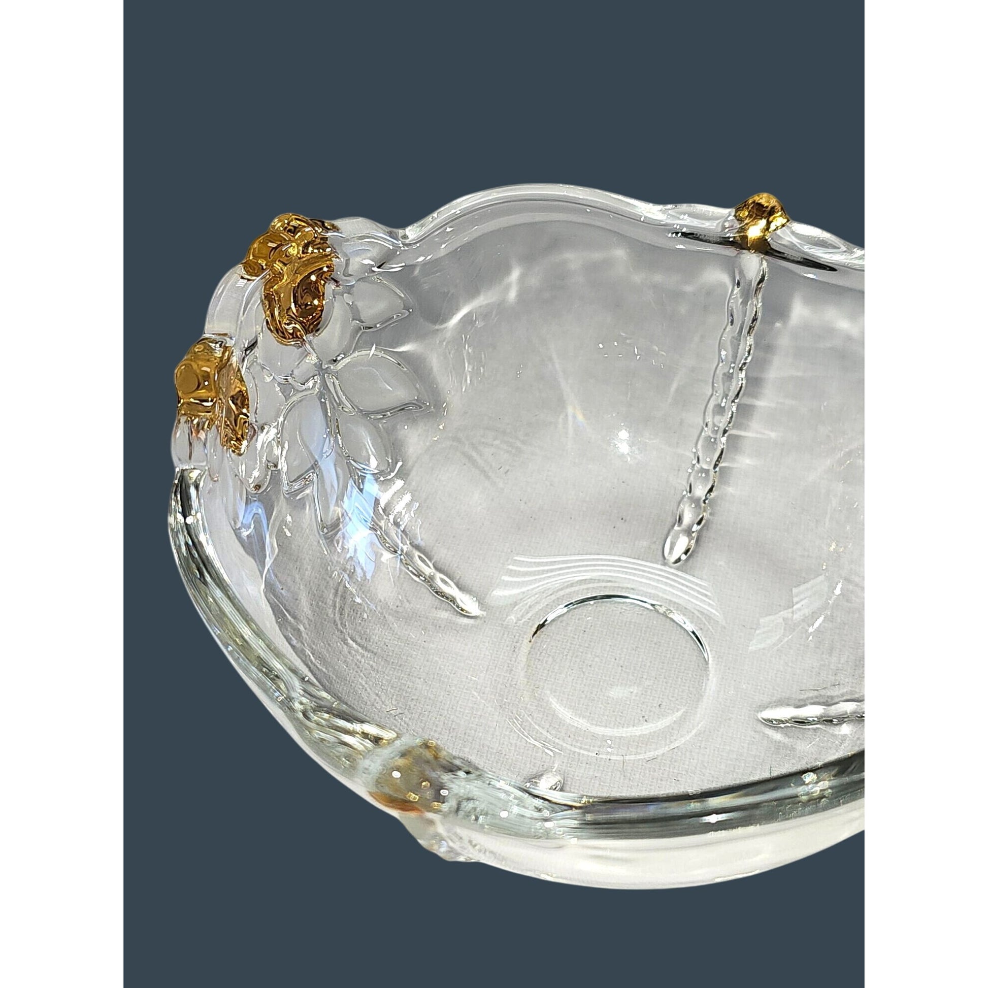 This elegant glass bowl adds sophistication with its gold floral accents and delicate scalloped design. A versatile piece for decor or functional use.