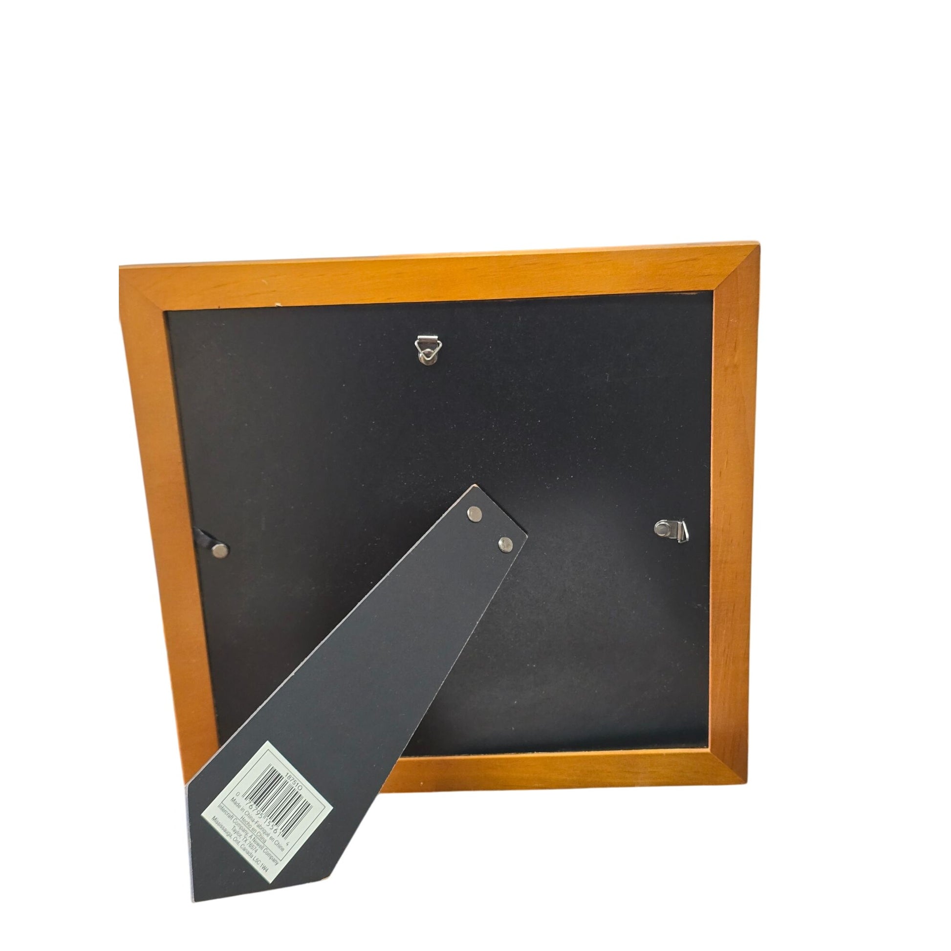 Frame size 11" x 11.5" - can sit on a desk or hang on a wall.