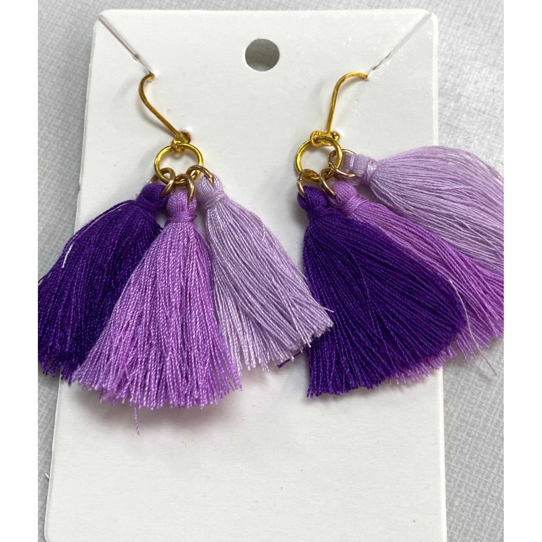 Elevate your style with these exquisite purple tassel earrings. Their striking colors and lightweight design make them an elegant choice for enhancing any outfit.