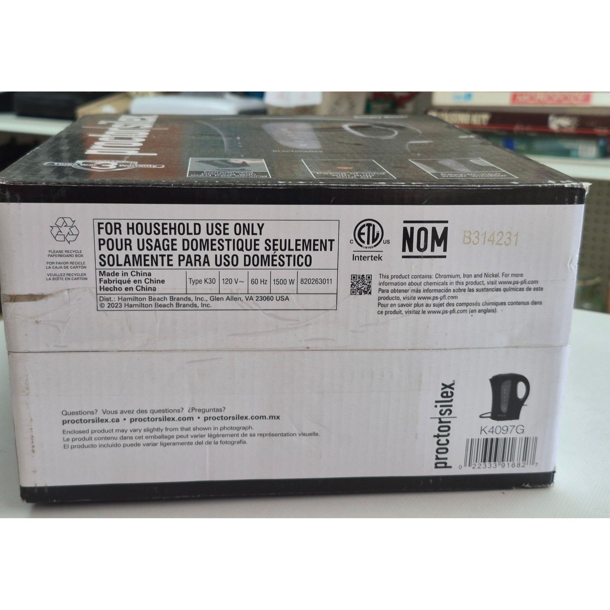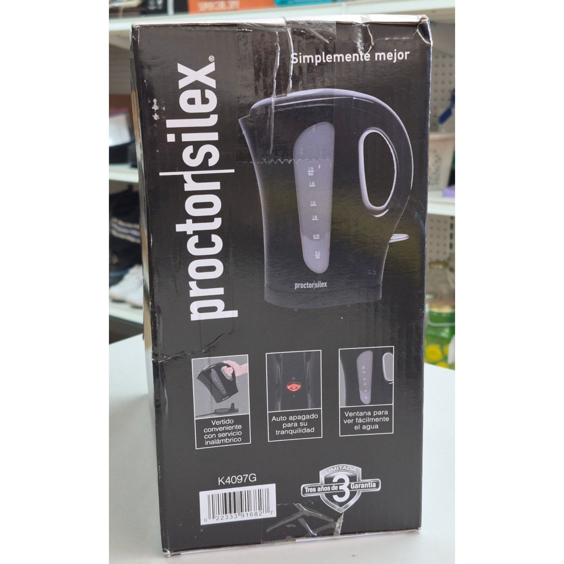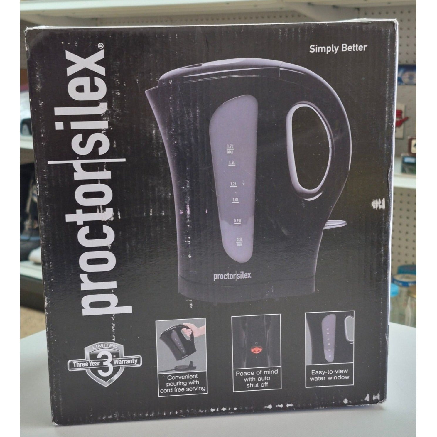 Experience the convenience and efficiency of this Proctor Silex Electric Kettle. Its cordless design, automatic shutoff, and 1.7L capacity make it a reliable choice for quick boiling.