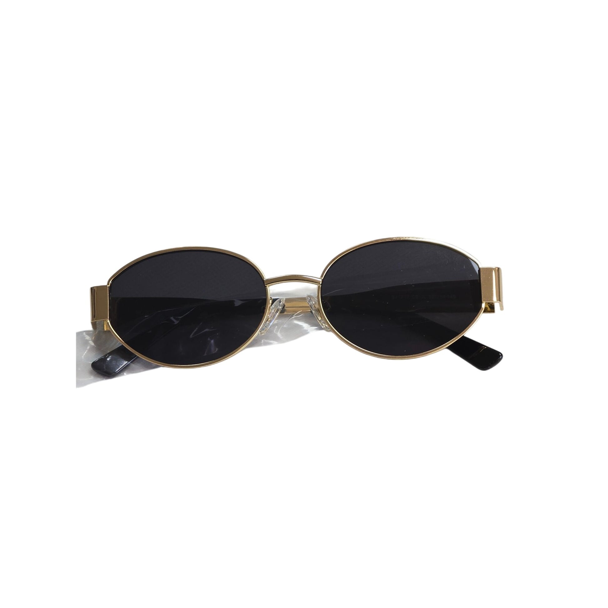 NEW Sojos Oval Sunglasses UV400 Gold Frame Black Lens Unisex SJ1217 CS