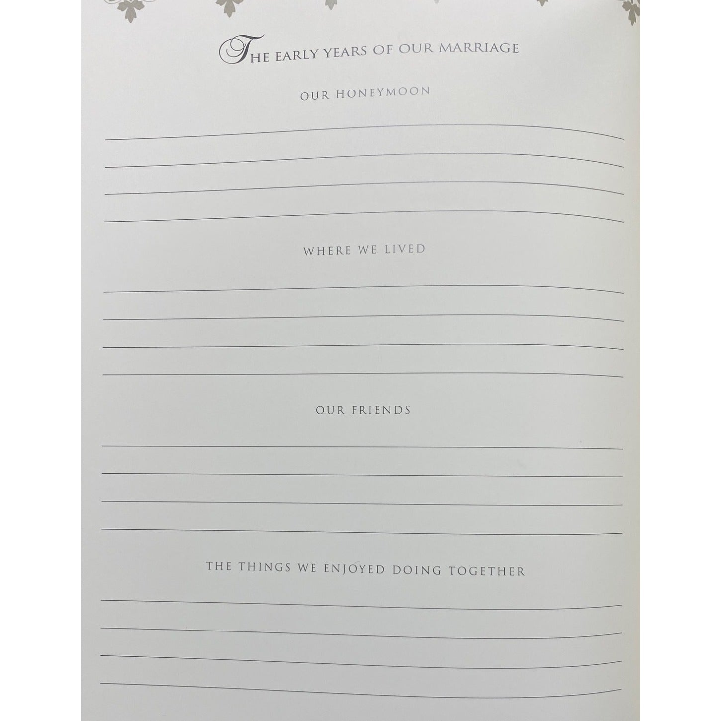 Celebrate your milestone with this elegant memory book, capturing the essence of your 25th wedding anniversary. Its exquisite design, featuring floral embossed cover, invites you to document cherished memories, significant events, and photographs. An ideal keepsake to reflect on your journey together, preserving moments of joy and love for years to come.