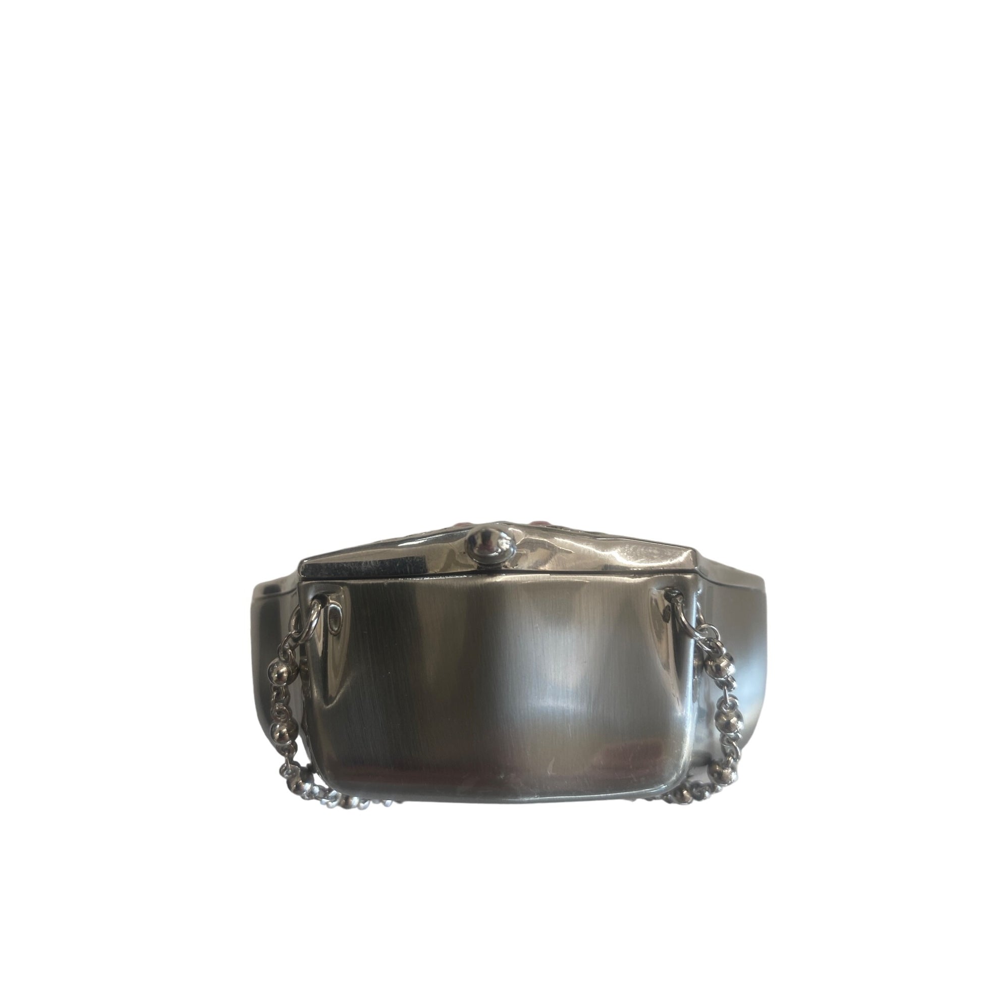 Partylite Silver Compact Candle Holder With Mirror & Pink Gem Design