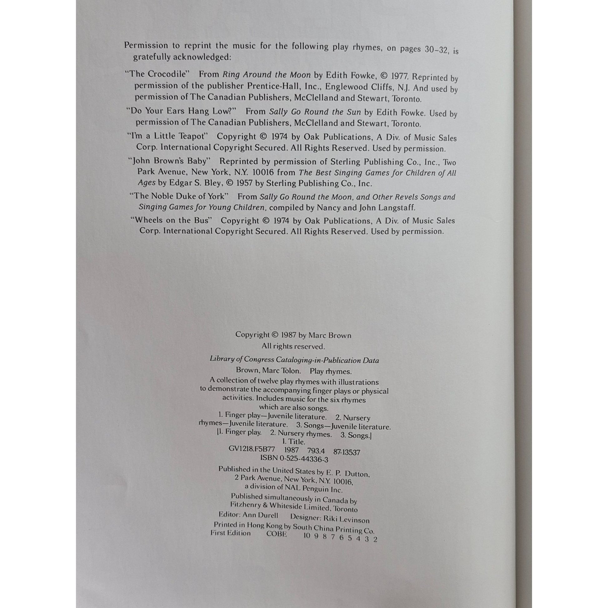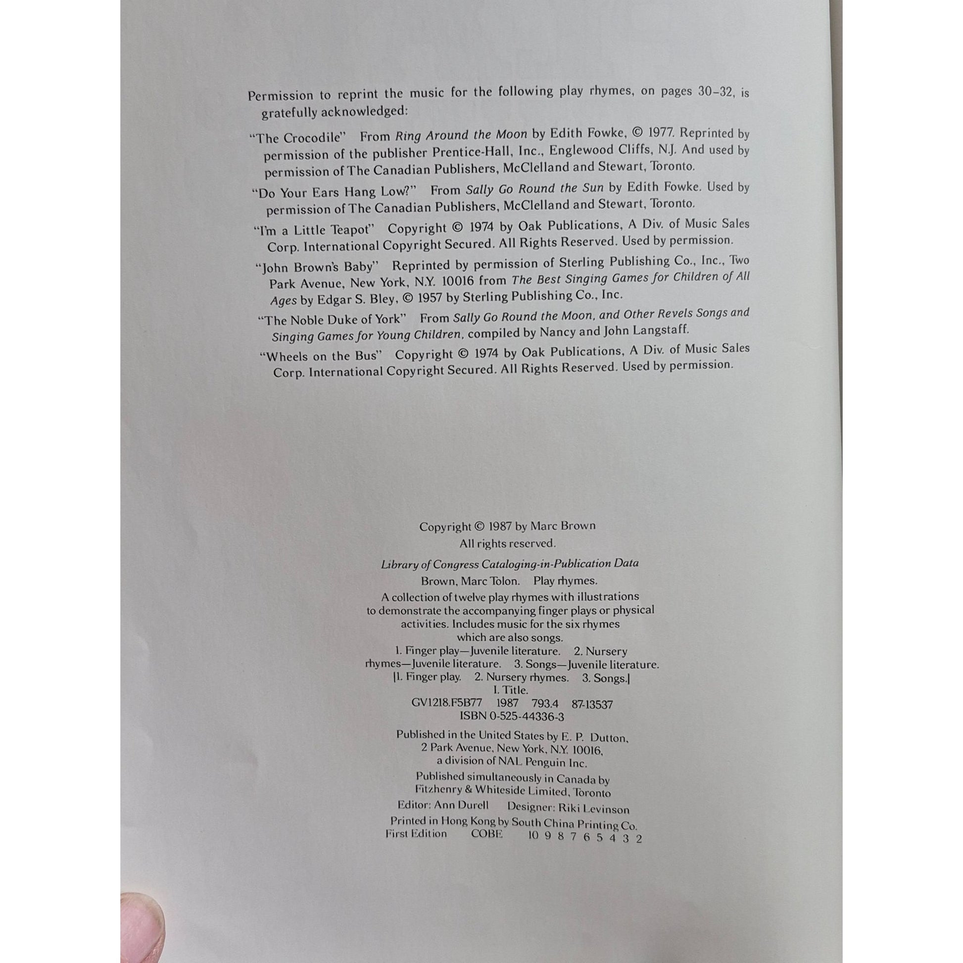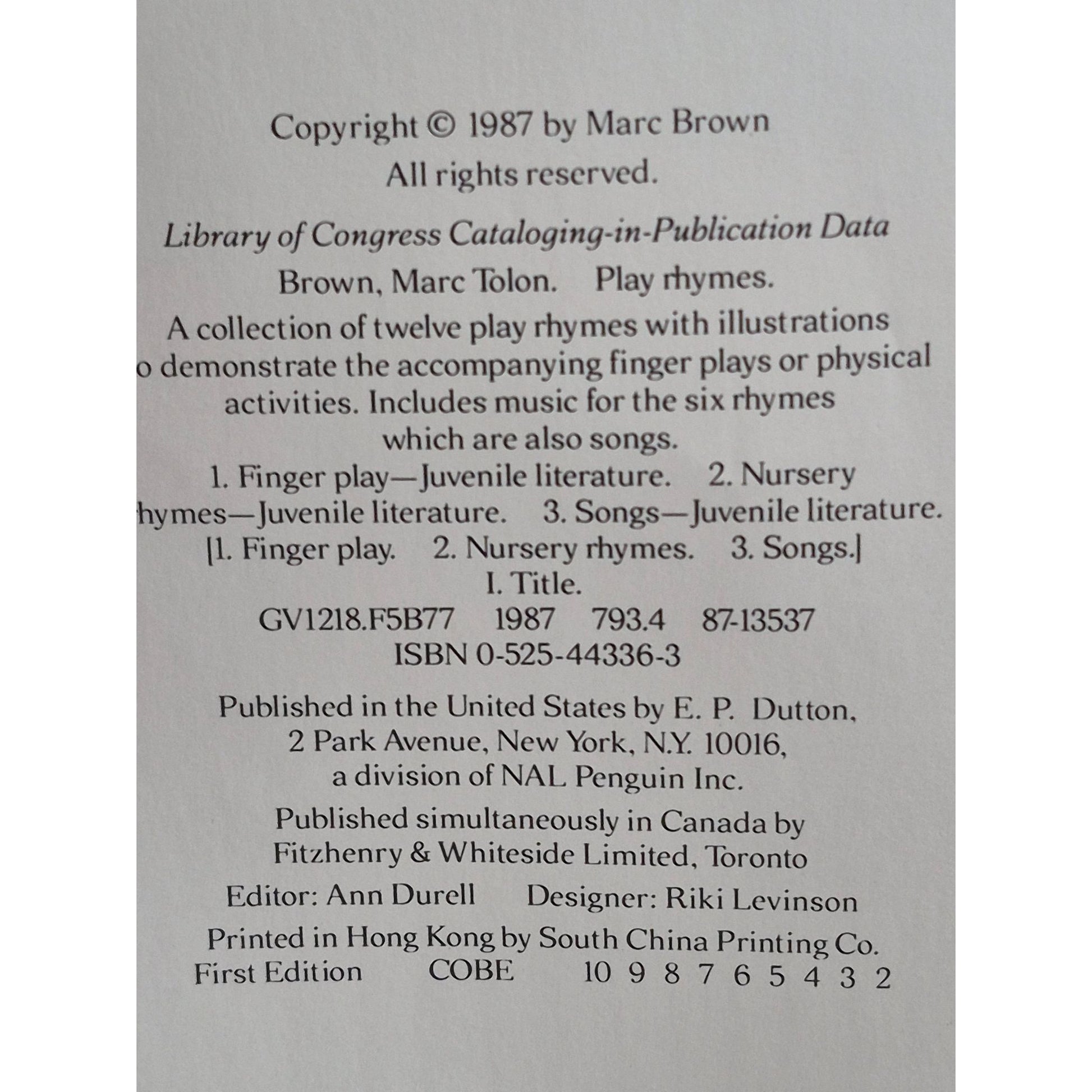 Play Rhymes By Marc Brown Hardcover First Edition 1987 Nursery Rhymes & Songs For Kids With Illustrations