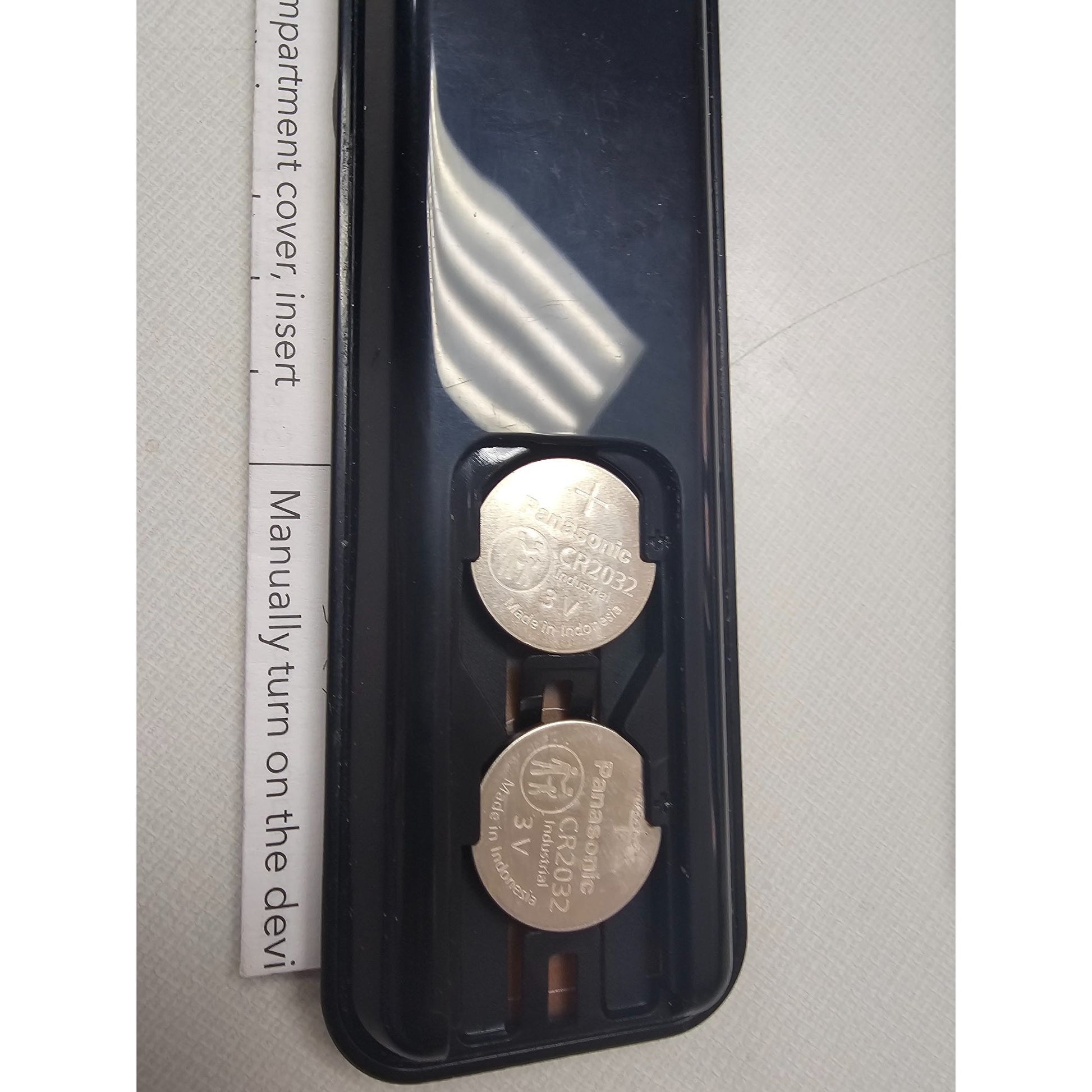 Light wear on buttons but fully functional. Remote length = 7 inches, width = 2 inches.