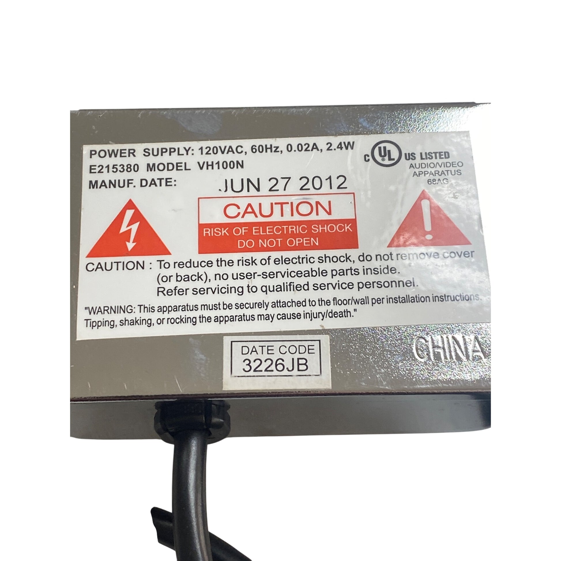• Power supply: 120VAC, 60Hz, 0.02A, 2.4W