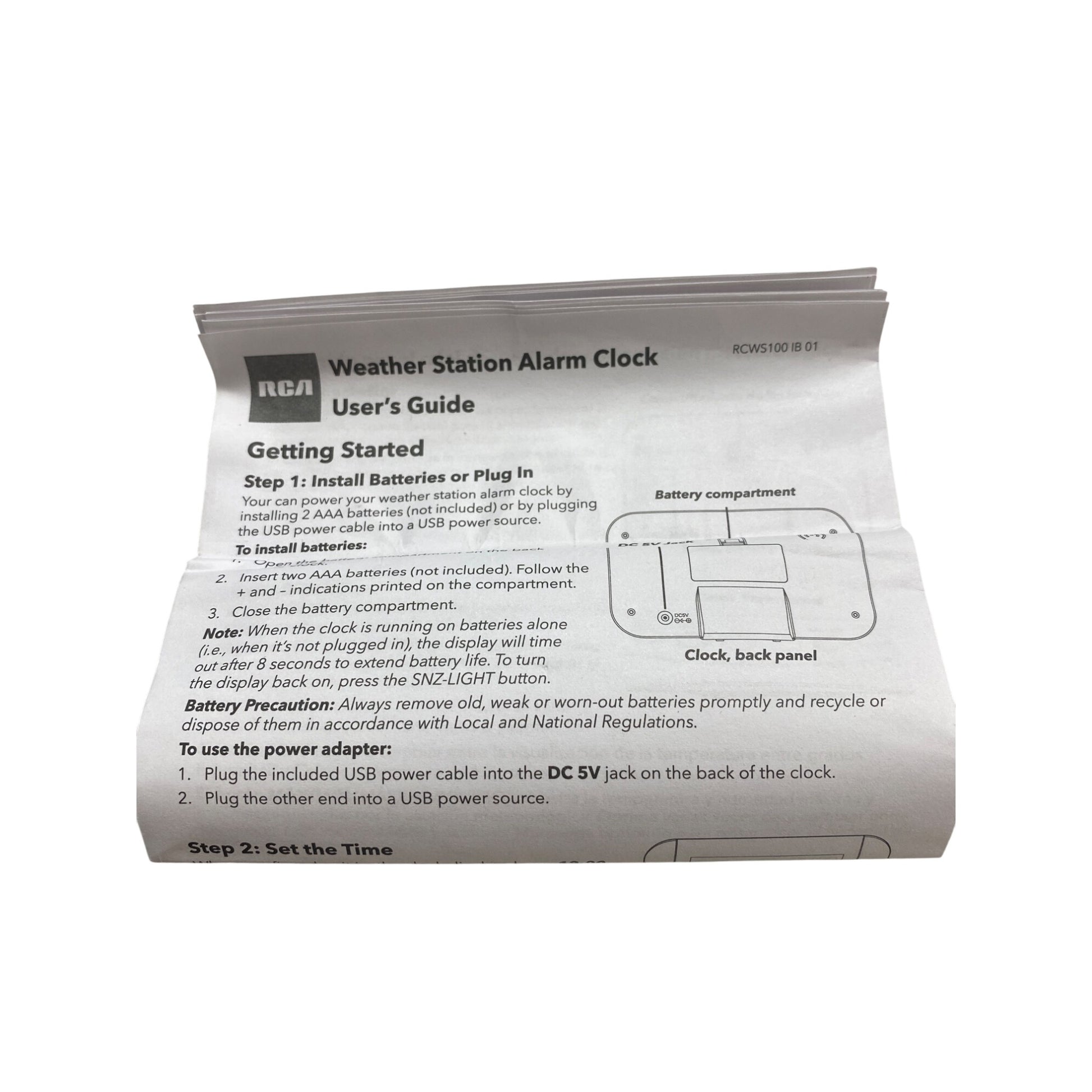 Upgrade your mornings with this RCA weather station alarm clock. Featuring a vivid color display, temperature and humidity readings, and calendar functions, it keeps you informed and organized. Convenient USB power option and snooze functionality ensure ease of use. Compact and stylish, it enhances any bedside or workspace.