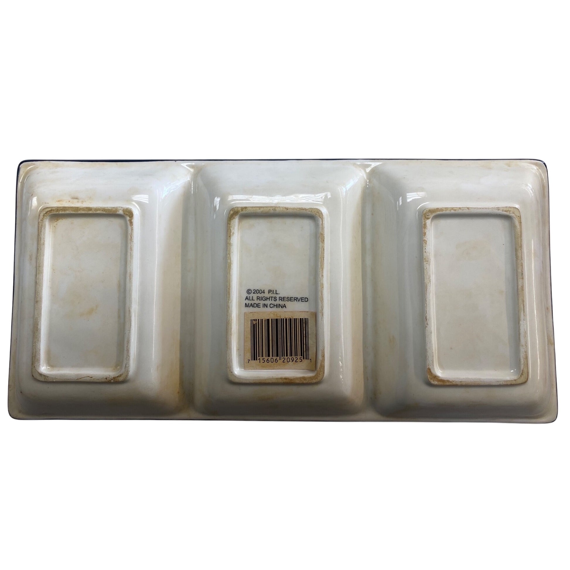 Red & Black Ceramic Snowman Divided Serving Tray With Snowflake Design